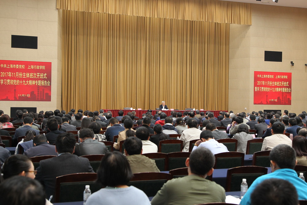本网讯 11月1日上午,校院举行11月份主体班次开班式暨学习贯彻党的十九大精神专题报告会,市委副书记、市委党校校长尹弘同志出席开班式,传达学习贯彻党的十九大精神。随后,尹弘同志主持召开校委会研究贯彻落实有关工作。市委组织部副部长、市委党校副校长、上海行政学院副院长陈皓同志主持开班式和报告会。常务副校院长沈炜同志在校委会上汇报校院学习贯彻党的十九大精神有关安排。