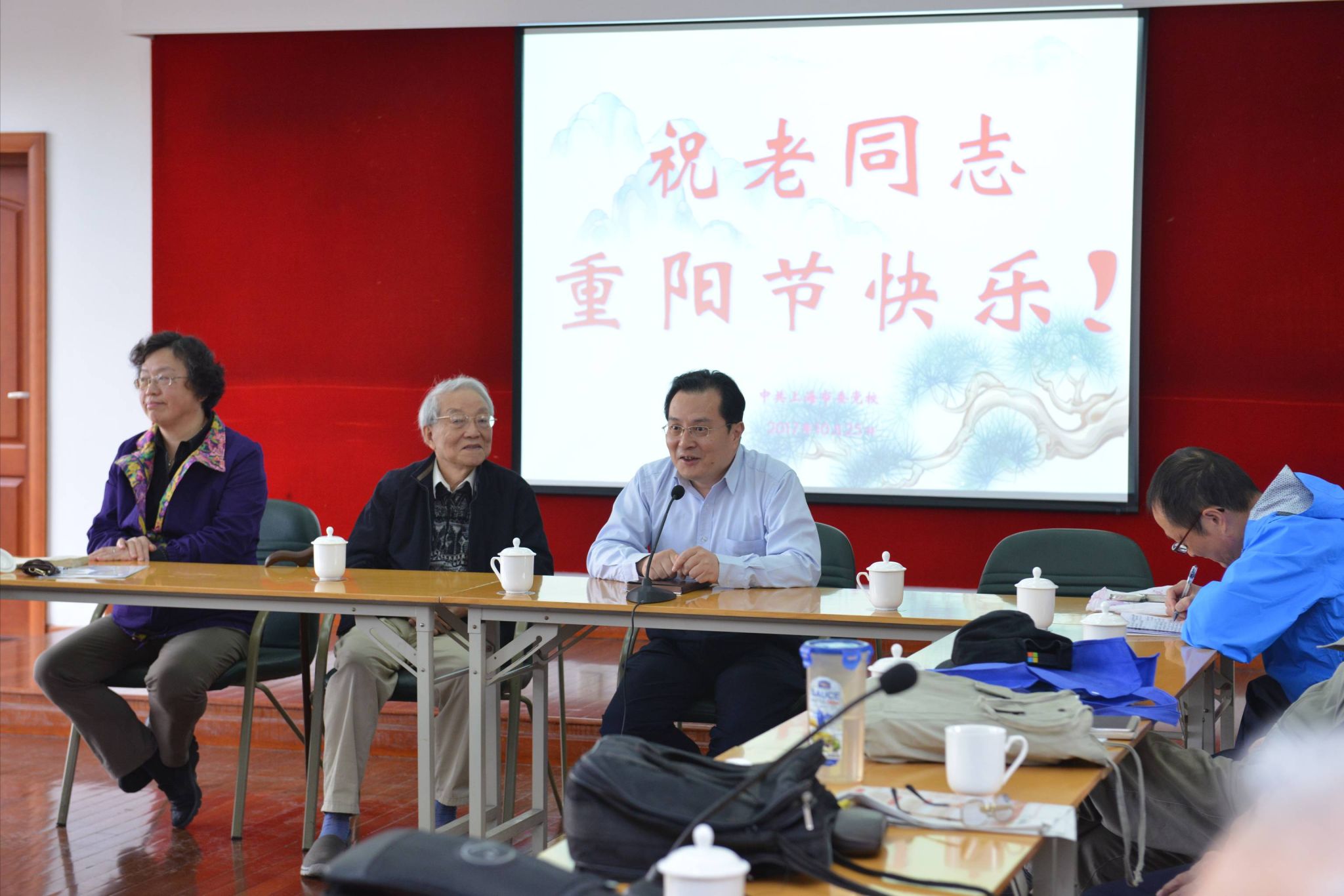 本网讯 10月25日,值全国第5个老年节暨上海市第30个敬老节即将到来之际,校院在行政楼西楼三楼会议室召开座谈会,为今年适逢70周岁、80周岁和80周岁以上的40余位离退休老同志集体祝寿。常务副校院长沈炜出席座谈会,与老同志共话发展、共贺佳节。