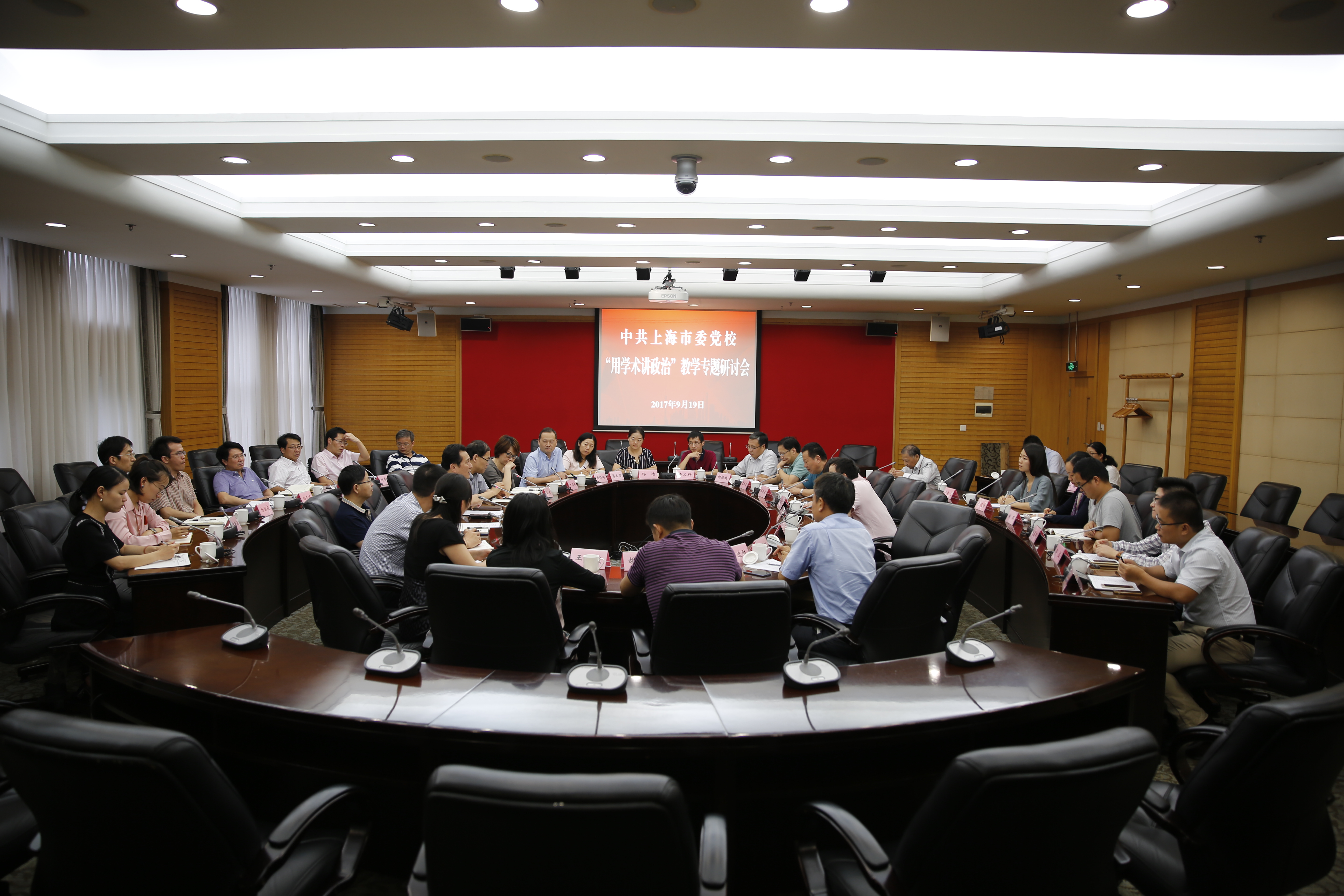 本网讯 为进一步加强我校教师的思想政治建设,教育引导教师在教学中始终牢固树立政治意识、大局意识、核心意识、看齐意识,始终严守政治纪律和政治规矩,9月19日下午,我校在海兴教学楼举行“用学术讲政治”教学专题研讨会。常务副校长沈炜同志出席并讲话。副校长曾峻同志主持会议。