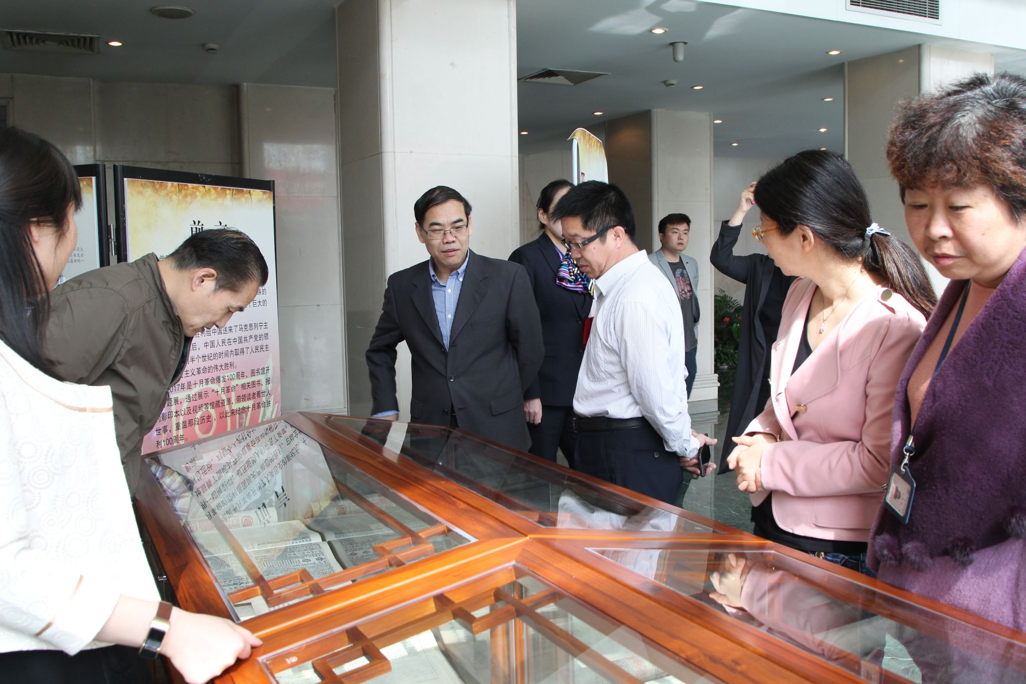 开幕式前夕,曾峻和到场嘉宾参观了校院读书月系列活动之一——“回眸1917”主题展。2017年,恰逢俄国十月革命胜利100周年,图书馆利用珍贵的馆藏资源,开设专题展,通过展示“十月革命”相关图书、报纸和俄文图册,并以“阅书”“阅世”“阅人”为线索,梳理“十月革命”的发生和发展,试图带领读者重温那段光辉历史,以此纪念“十月革命”胜利这一伟大历史事件。