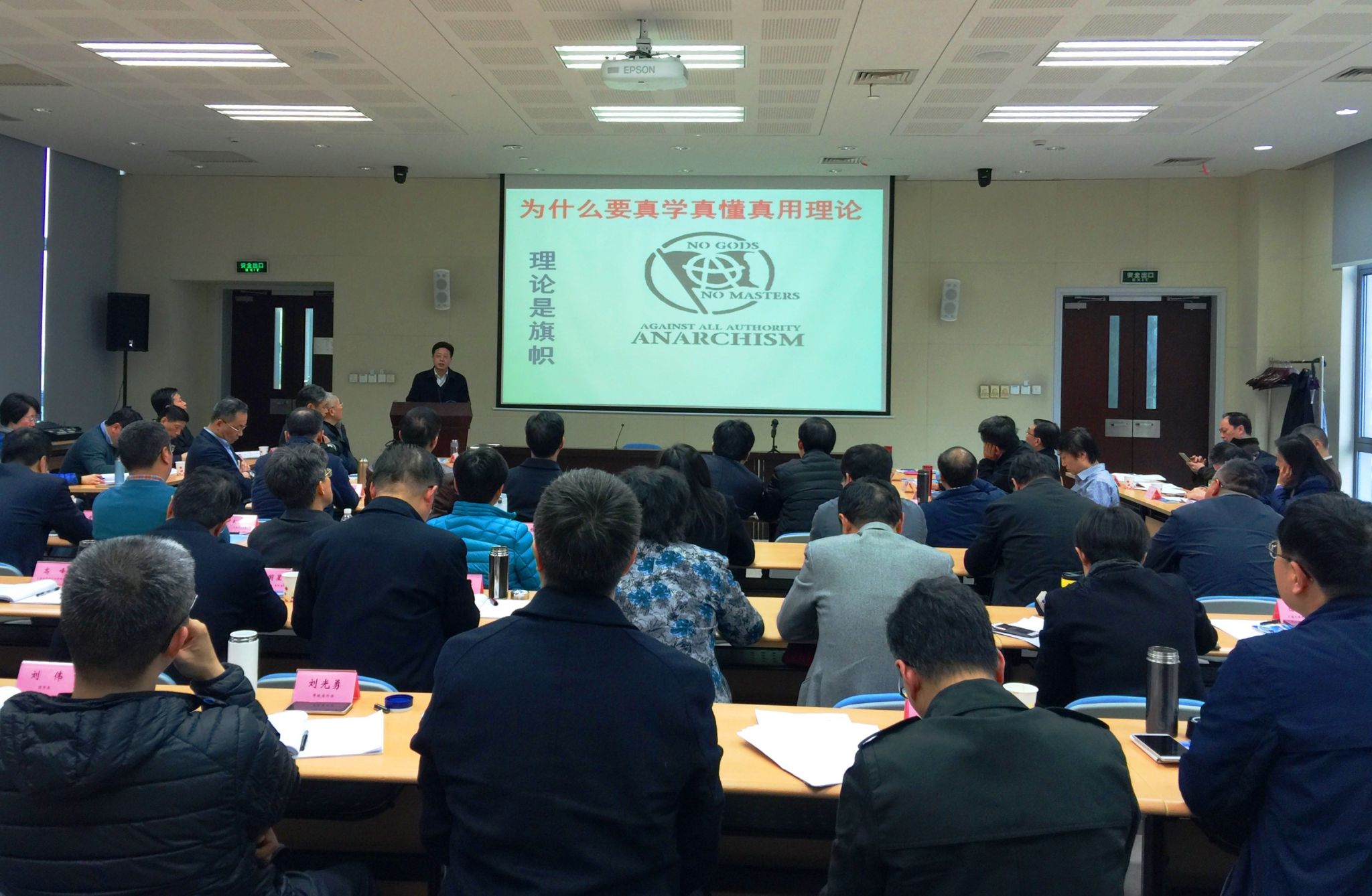 市社会工作党委秘书长丁振文学员以“加强理论学习,提高理论素养”为题,回答了真学真懂真信真用理论的“为什么”与“是什么”的问题。丁振文认为,理论是治国理政道路上的旗帜、指明灯,影响前途命运选择,而重视学习和善于学习正是中国共产党独特的精神气质,必须学习好、用好。当下,就是要真学真懂真用好当代中国马克思主义。上海市一中院副巡视员沈维嘉学员点评时谈到,加强理论学习,提高理论素养,要把学习习近平总书记系列重要讲话精神作为当前学习之要。