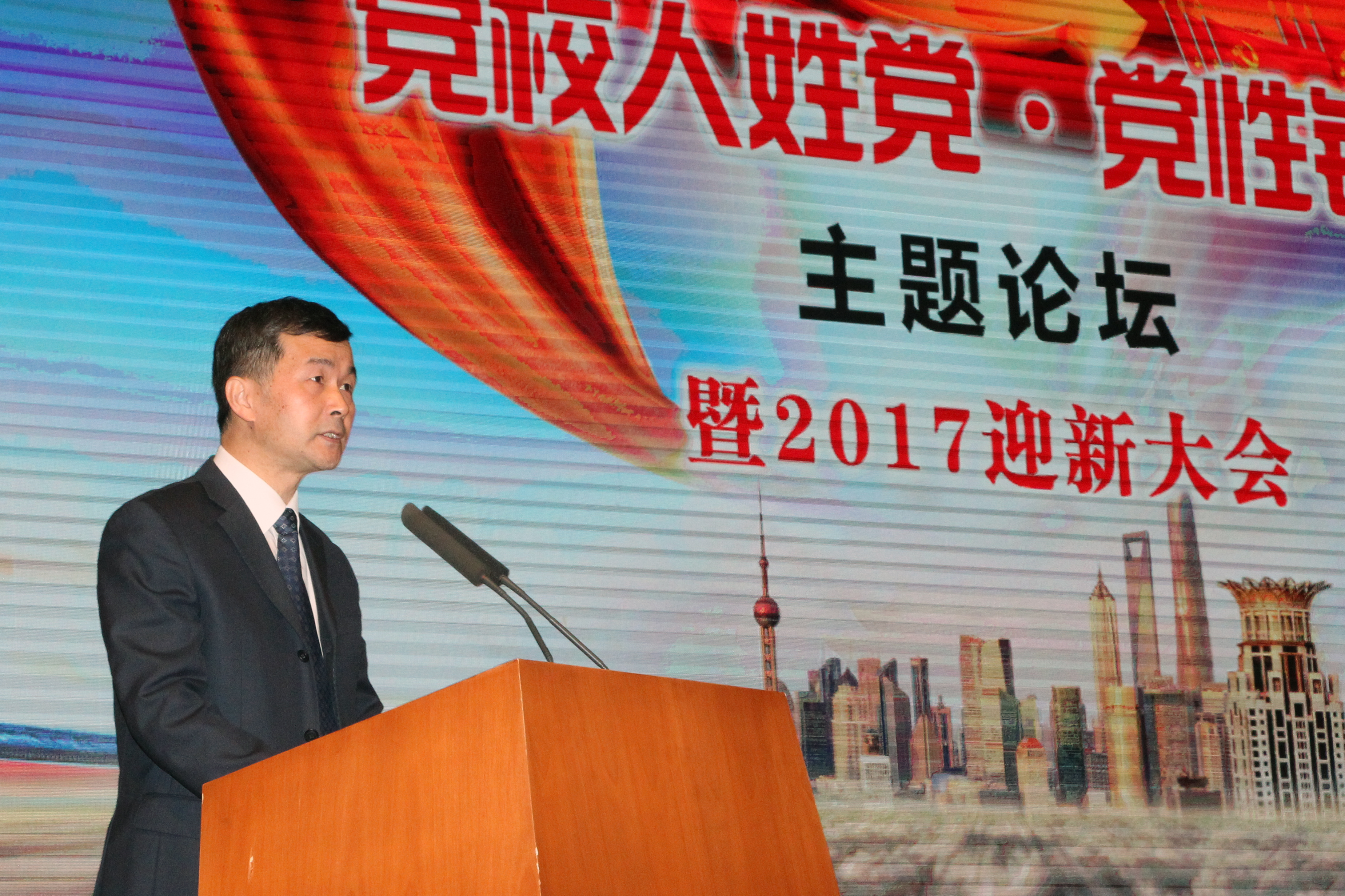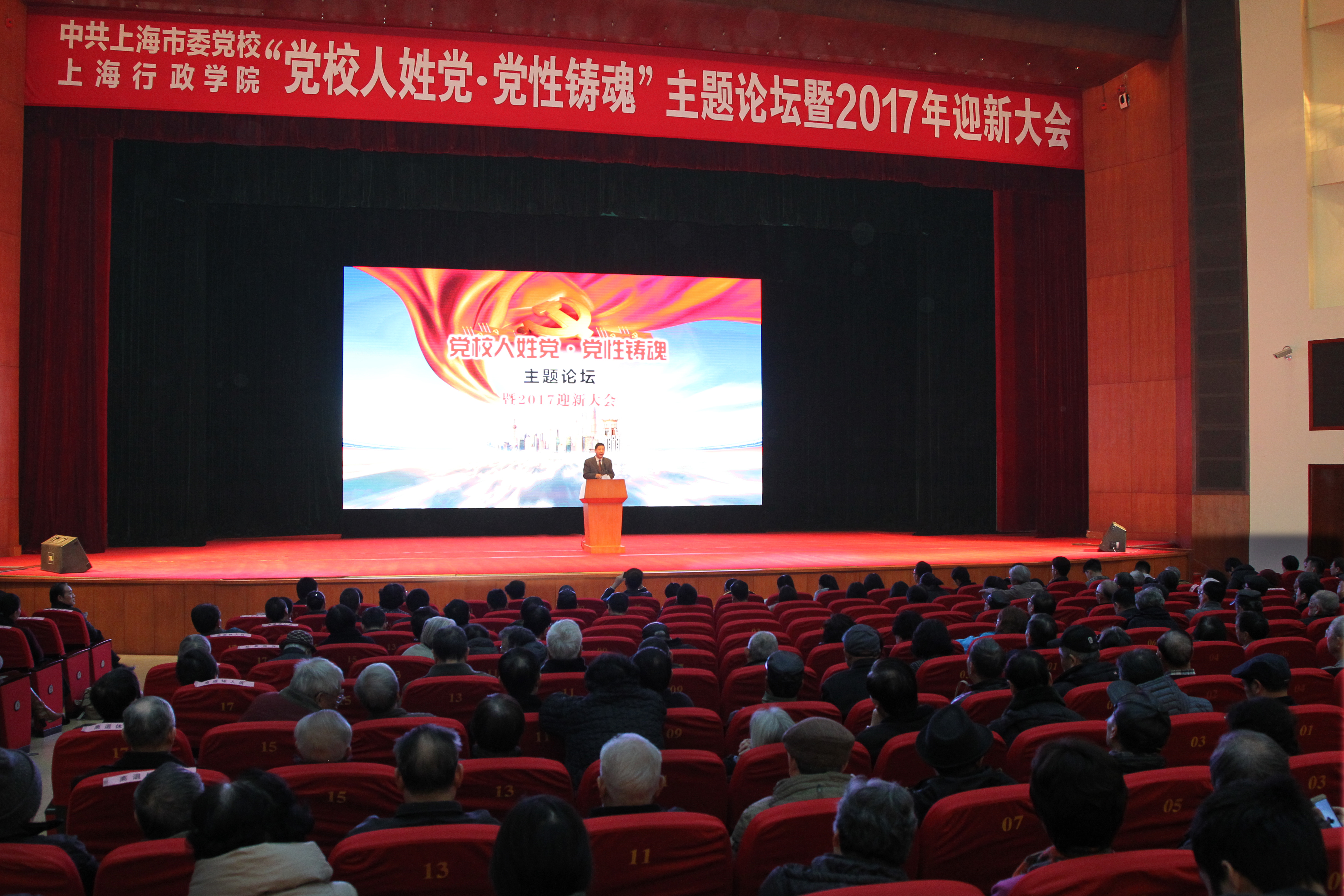 本网讯 1月3日上午,市委党校、上海行政学院“党校人姓党·党性铸魂”主题论坛暨2017年迎新大会在大礼堂隆重举行。主题论坛以视频方式回顾了2016年校院围绕“党校人姓党”展开深入讨论和生动实践的全过程;四位党员代表结合自身经历解读了“党校人姓党”的深刻内涵。常务副校院长王国平高度肯定“党校人姓党”大讨论活动,表示坚持和实践好“党校人姓党”,必须从统一教职工认识这个思想基础抓起,必须转化为实际行动。王国平还总结了2016年五大战略、分校院工作和校院系统建设取得的成就,向关心支持校院发展的老领导、老同志致以崇高敬意,向全体教职工和研究生同学们表示衷心感谢。