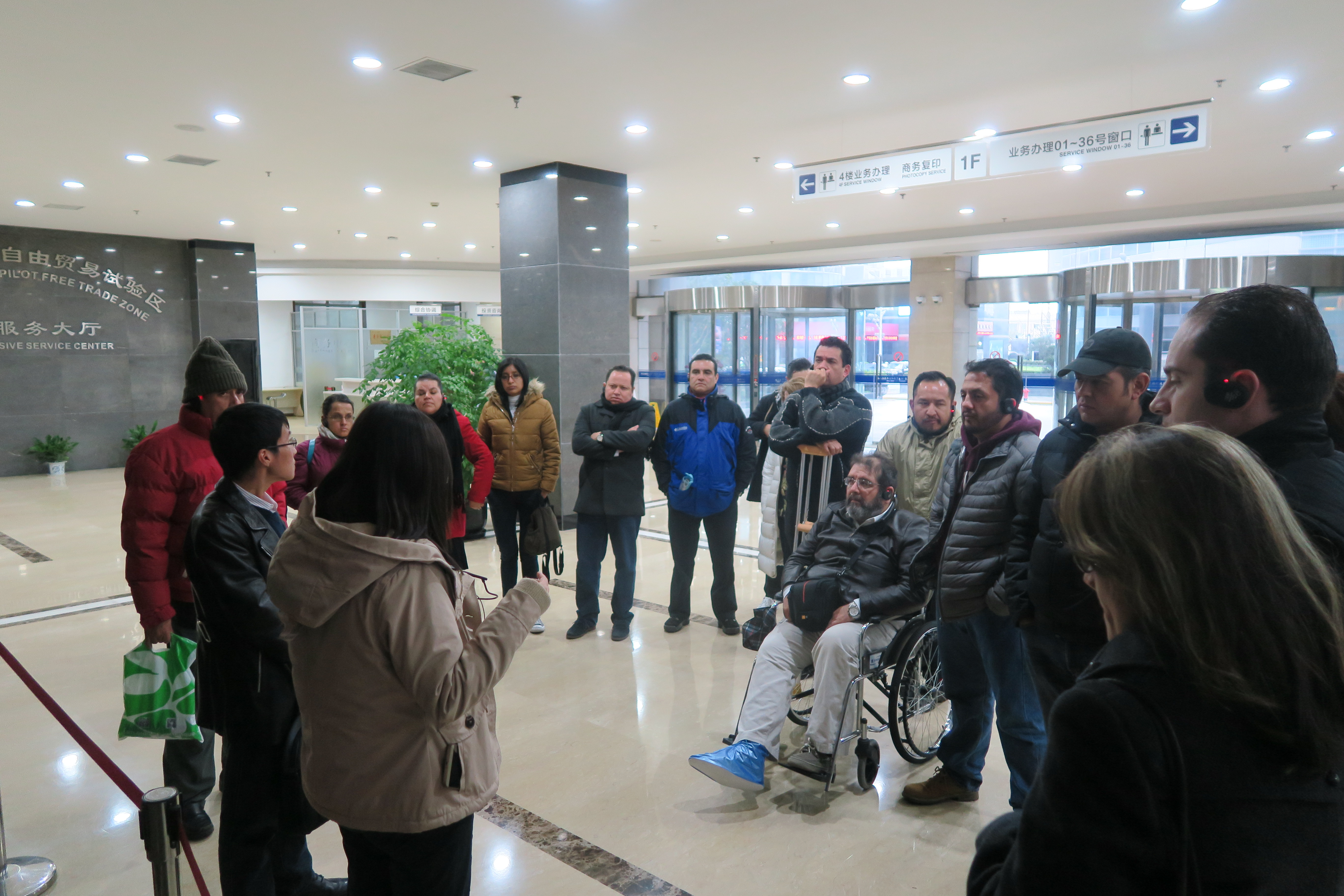 23日上午,教育长梅丽红热情会见研修班成员,并与学员合影留念。培训处负责人陪同会见。经济学教研部李猛副教授为学员讲授“上海经济发展”专题。学员下午前往中国(上海)自由贸易试验区进行现场教学,了解自贸试验区改革试点情况。学员就上海市政建设、交通拥堵、港口装载量及运输方式、饮用水来源和处理方式、高等教育比例、外国人在沪工作居住情况等问题与老师们热烈互动,并分享了墨西哥在城市建设、城市规划等方面的经验。