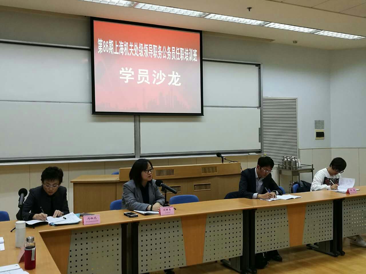 本网讯 11月21日,第86期公务员班在海兴教学楼104室举办第二期学员沙龙。本次学员沙龙的主题是“加强市场监管、转变政府职能”。市食药监局食品餐饮监管处刘晔青和市住房城乡建管委建筑市场监管处冯钢花进行主题发言。