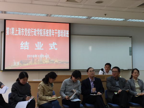 本网讯 11月4日中午,第1期上海市党校、行政学院青年干部培训班圆满结业。副校院长曾峻出席结业式并讲话。办公室主任、校院工作处处长丁为民出席结业式,组织人事处处长赵彣主持结业式。