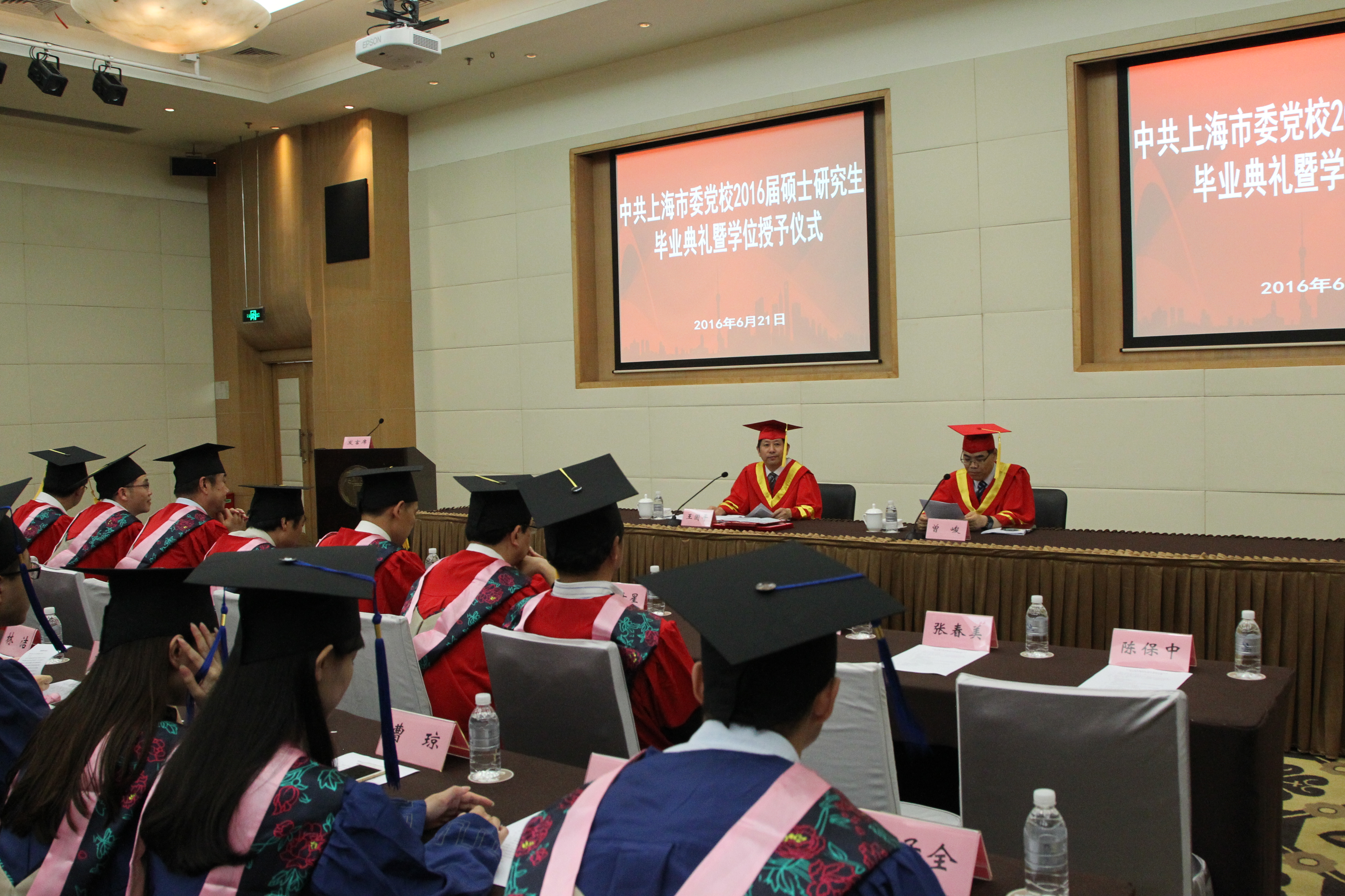 本网讯  6月21日,我校2016届硕士研究生毕业典礼暨学位授予仪式隆重举行。校学位评定委员会主席、常务副校长王国平,副校长曾峻出席了典礼,20位教研部负责人、毕业硕士生导师及部分毕业生家长也参加了典礼。