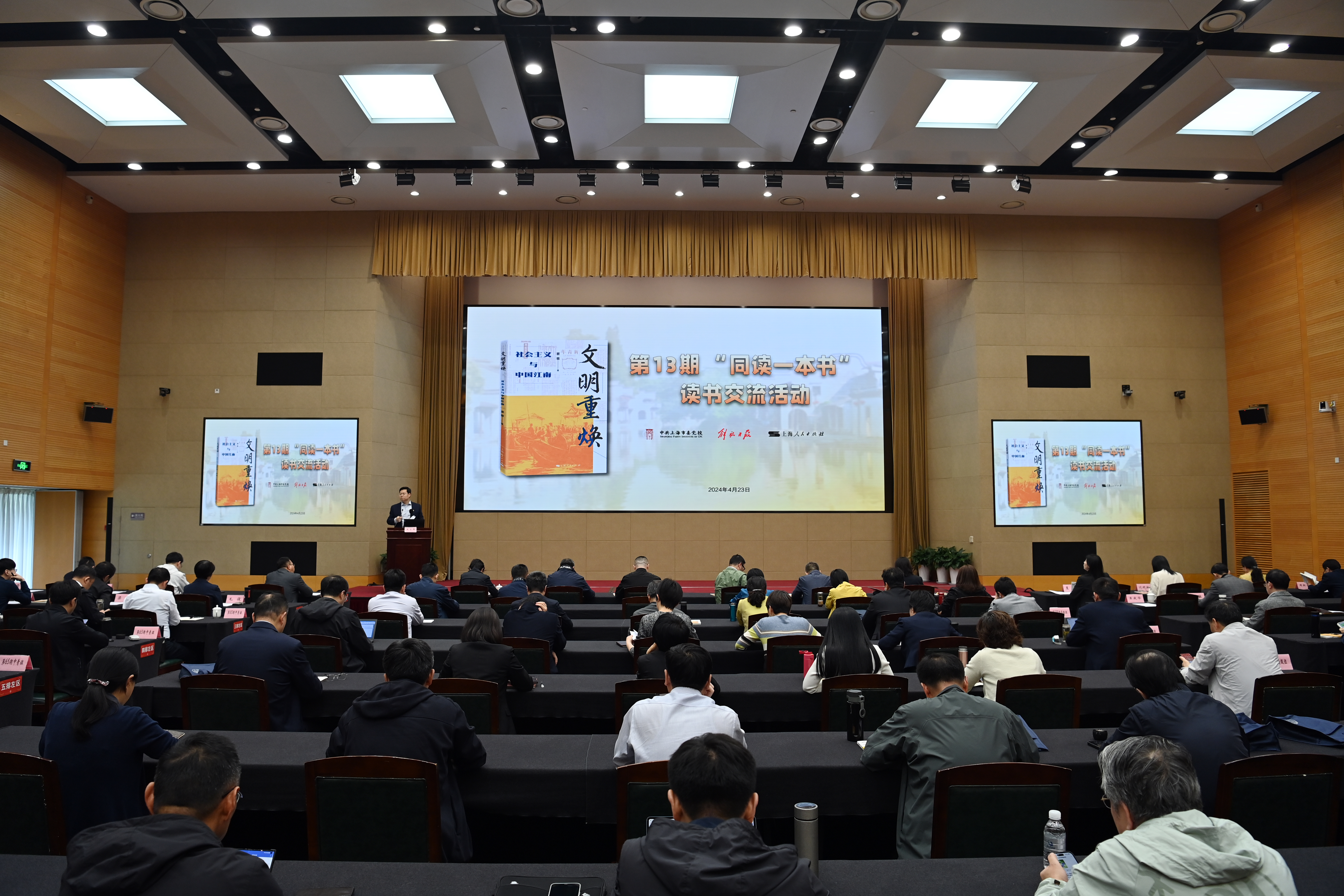第65期中青年干部培训班学员陈雷主持活动。读书分享会上,6名学员代表进行了发言,畅谈读书的体会。第138期领导干部进修班学员龚伟谈到,在文明重焕的视野下,我们看见“沉甸甸”的中华优秀传统文化为马克思主义落地中国江南提供了肥沃土壤;看见马克思主义在各派社会主义的竞争中凸显出来并成为江南人民追求光明前途的最终选择;看见中华文明最优秀的继承者中国共产党成为马克思主义落地中国江南最坚定的实践者。第65期中青年干部培训班学员梁炀认为,这本书讲述科学社会主义理论在中国江南地区发展、传播的历史,文字不长却精炼,六七万字读下来一气呵成,立足中华文明大历史来讲现代中国的历史,具体落脚于现代中国历史发展中的“江南”,最终指向的是建设中华民族现代文明这个重大问题。第111期处级领导职务公务员任职班学员李赟谈到,这本书有三个显著特点:用学术讲政治、从小处观大势、以妙笔讲故事,作者以自信之心,写自信之史,明自信之理。第35期处级干部进修班学员贾恺谈到,文明重焕,讲的是文化自信的问题;社会主义与中国江南,讲的是“两个结合”的问题。两个问题统一于全面建成社会主义现代化国家和实现中华民族伟大复兴的奋斗目标。第36期处级干部进修班学员杲永亮认为,这本书带我们回到20世纪初叶山水秀丽、人文渊薮的江南,感悟“两个结合”的实践伟力,领悟好坚持好运用好“两个结合”的科学方法。第6期中青年干部培训二班学员顾邹谈到,从中华文明到现代中国,从古今江南到现代江南,作者如高清摄像镜头一般,用成熟简练且不失趣味的文字,时而俯瞰全貌、时而精雕细节,不断切换焦距,远近交叠、动静切换,描绘社会主义在诗意江南的初传和成长,展现具有历史传承意义的文明颗粒感和文化纵深度,给予读者充分的阅读体验和知识领悟。