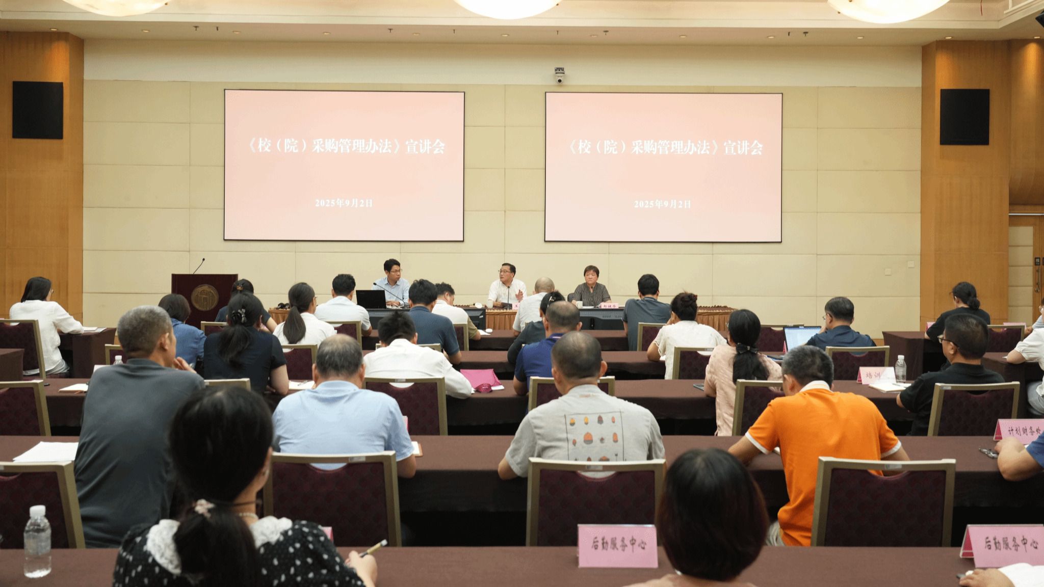 为进一步贯彻中央规范党政机关采购行为、防范廉政风险、建设节约型机关要求,提高采购管理工作规范化、科学化水平,9月2日上午,我校召开新修订的《校(院)采购管理办法》宣讲会。副校长王永杰出席并讲话。各部门主要负责人和经办人参会。