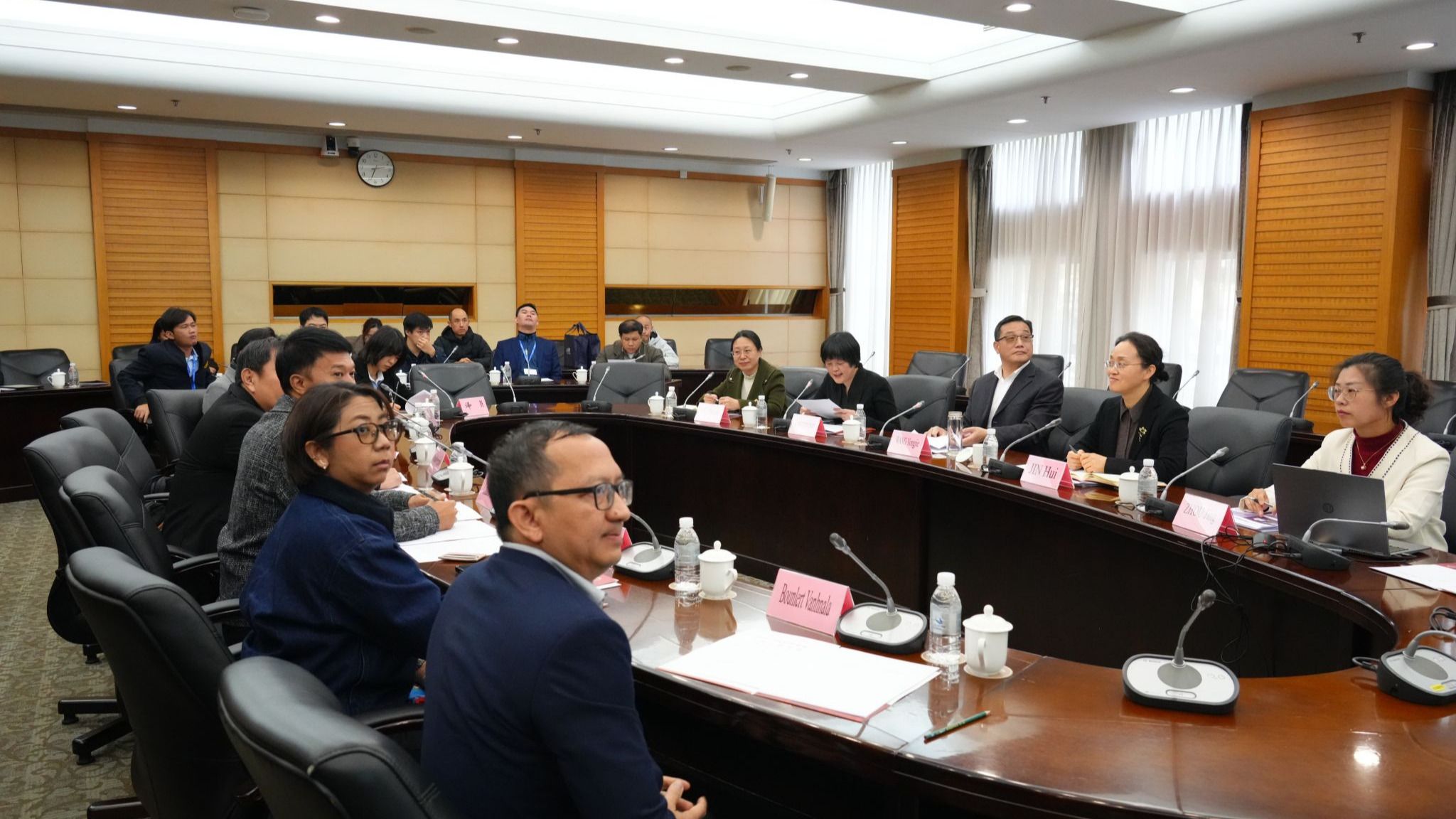 王永杰对考察团一行表示欢迎。他介绍了校(院)概况,回顾了与泰国、越南、老挝三国相关机构的合作,重点介绍了校(院)教研咨一体化与国际交流情况。他表示,澜沧江—湄公河合作是中国与柬埔寨、老挝、缅甸、泰国、越南共同发起和建设的新型次区域合作机制,自成立以来,为深化六国睦邻友好和务实合作作出了积极贡献。校(院)愿在此机制下,积极推动相关领域合作,并以此次交流为契机,加强互学互鉴。
