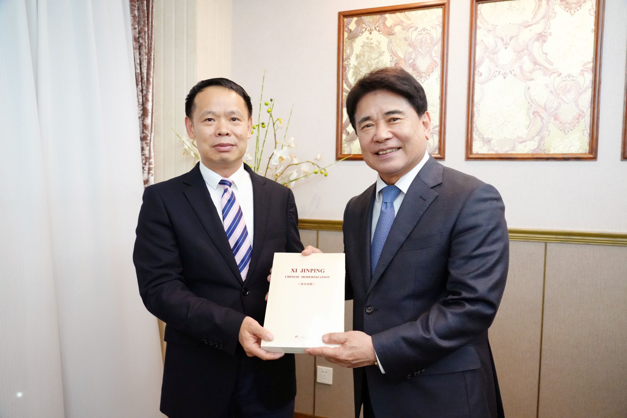 陆东一感谢校(院)热情接待。他表示,两院建立合作关系25年来,联合研究成果丰硕。他盛赞习近平新时代中国特色社会主义思想的伟大实践,认为中国共产党的全面领导、以人民为中心的发展理念和社会主义市场经济体制,为中国发展稳定提供了根本保障,并对上海在中国式现代化中的龙头带动和示范引领作用给予充分肯定。他希望双方继续携手,为中韩交流合作和地方行政创新贡献智慧。