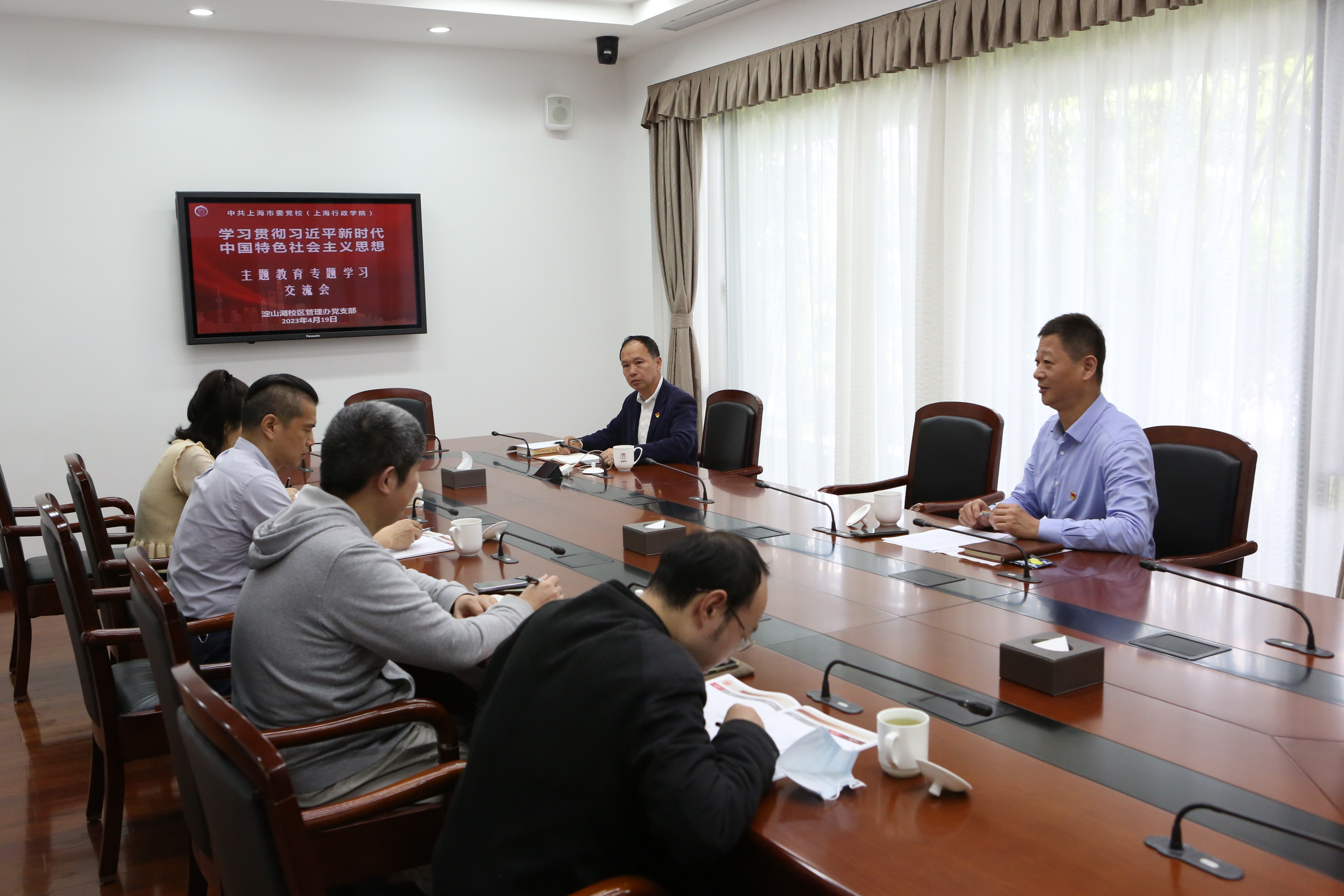 本网讯 4月19日,淀山湖校区管理办公室党支部开展学习贯彻习近平新时代中国特色社会主义思想主题教育专题学习调研。