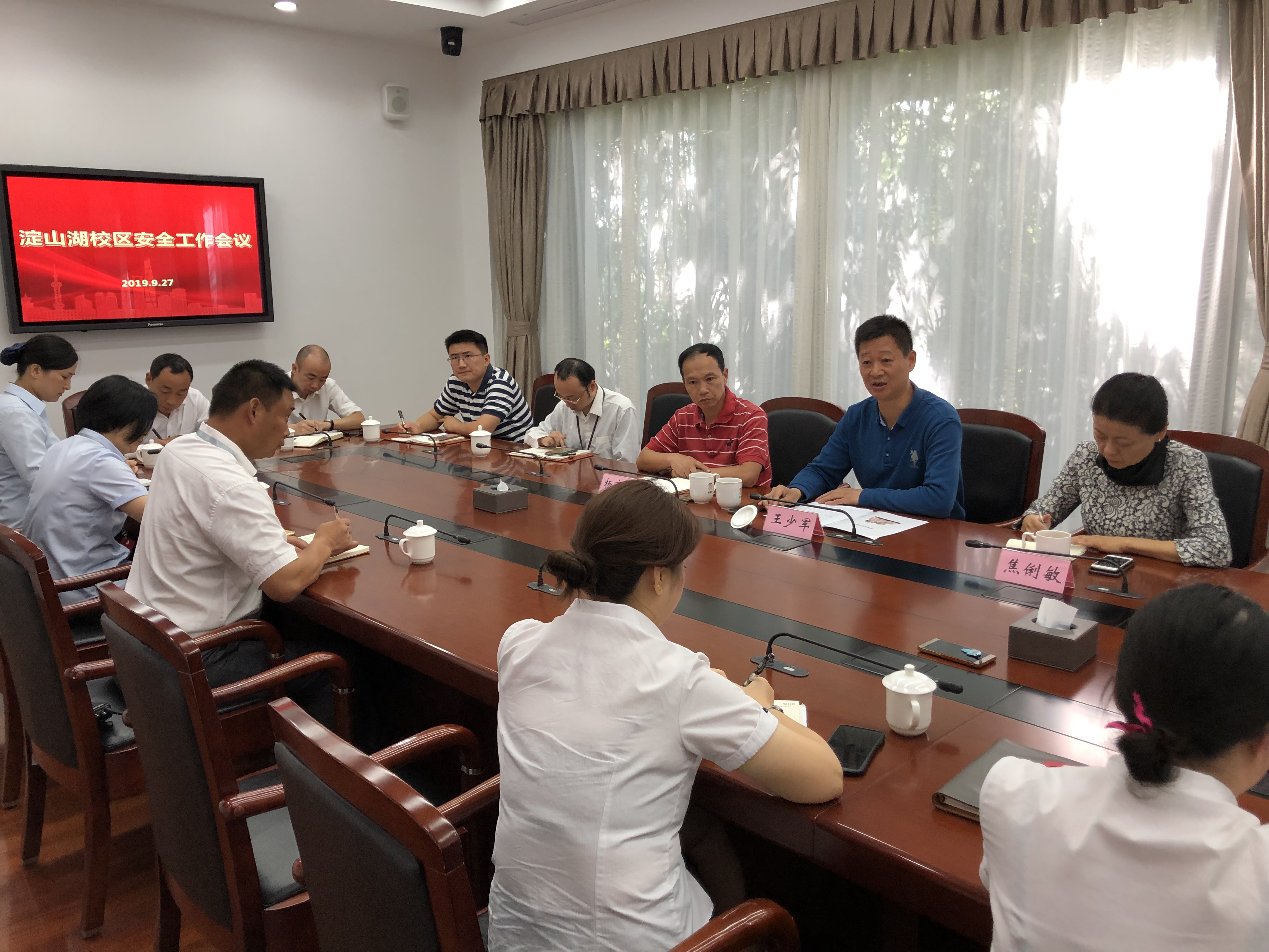本网讯 9月27日,为迎接新中国成立七十周年、第二届进口博览会的举办,开展“岗位建新功、员工见行动”的主题活动,根据《关于开展“迎国庆、迎进博”校院安全专项检查的通知》,淀山湖校区管理办公室召开了校区安全工作会议,并与三家维保单位共同开展节前安全、卫生和开班大检查。