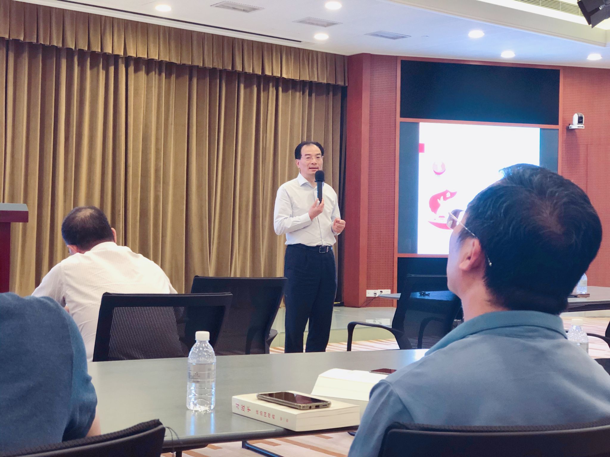 本网讯 8月26日下午,信息化管理处党支部、后勤保卫处党支部、后勤服务中心党支部和海兴大厦党支部在改革开放实训室联组深入学习《习近平谈治国理政》第三卷(以下简称第三卷)。副校(院)长朱亮高以普通党员身份参加支部组织生活,并为党员讲授题为《聆听时代声音、回应时代呼唤》的专题党课。