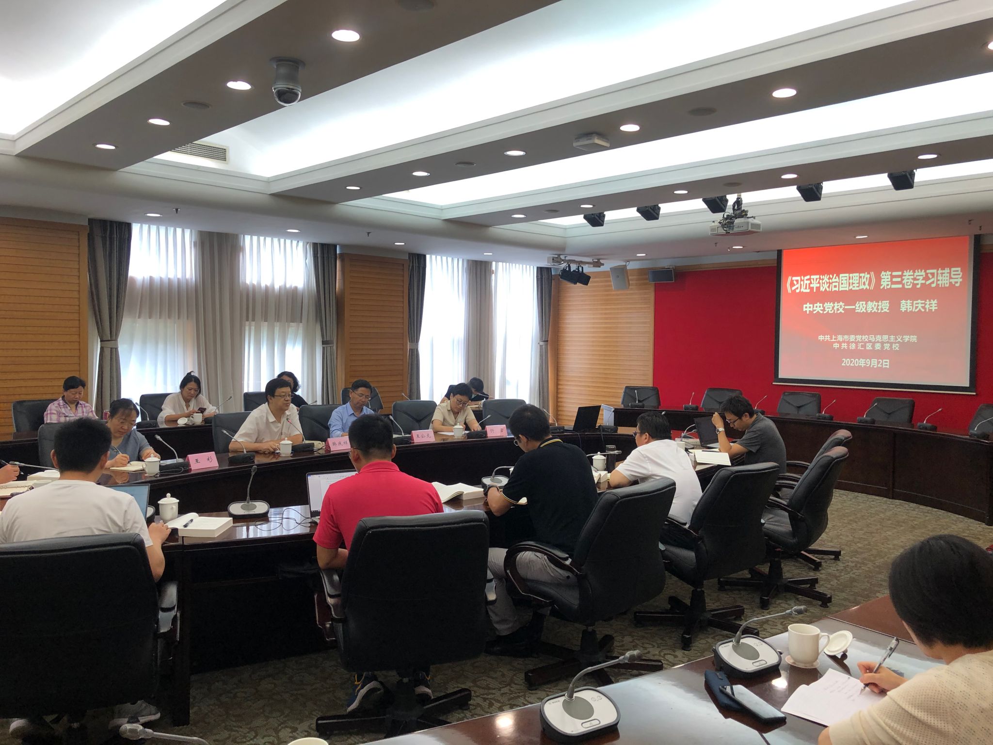 本网讯 为扎实推进与调研基地的党建联建,持续深入学习《习近平谈治国理政》第三卷,9月2日上午,马克思主义学院与徐汇区委党校、虹口区委党校等两家智库联盟单位联合举办学术沙龙,邀请中央党校一级教授韩庆祥老师就《习近平谈治国理政》第三卷的学习宣讲开展专题辅导。