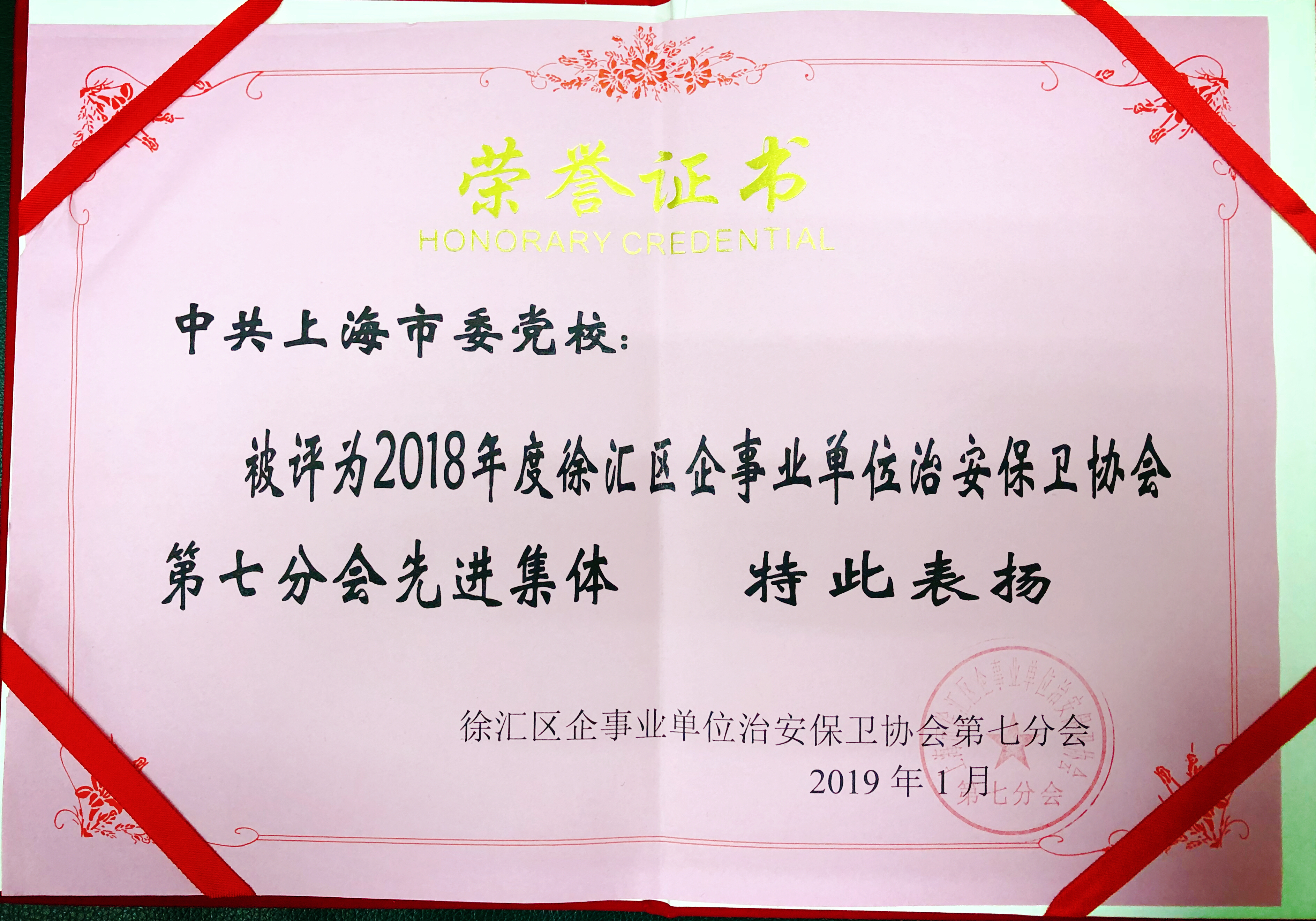 我校被评为2018年度徐汇区企事业单位治安保卫协会第七分会先进集体