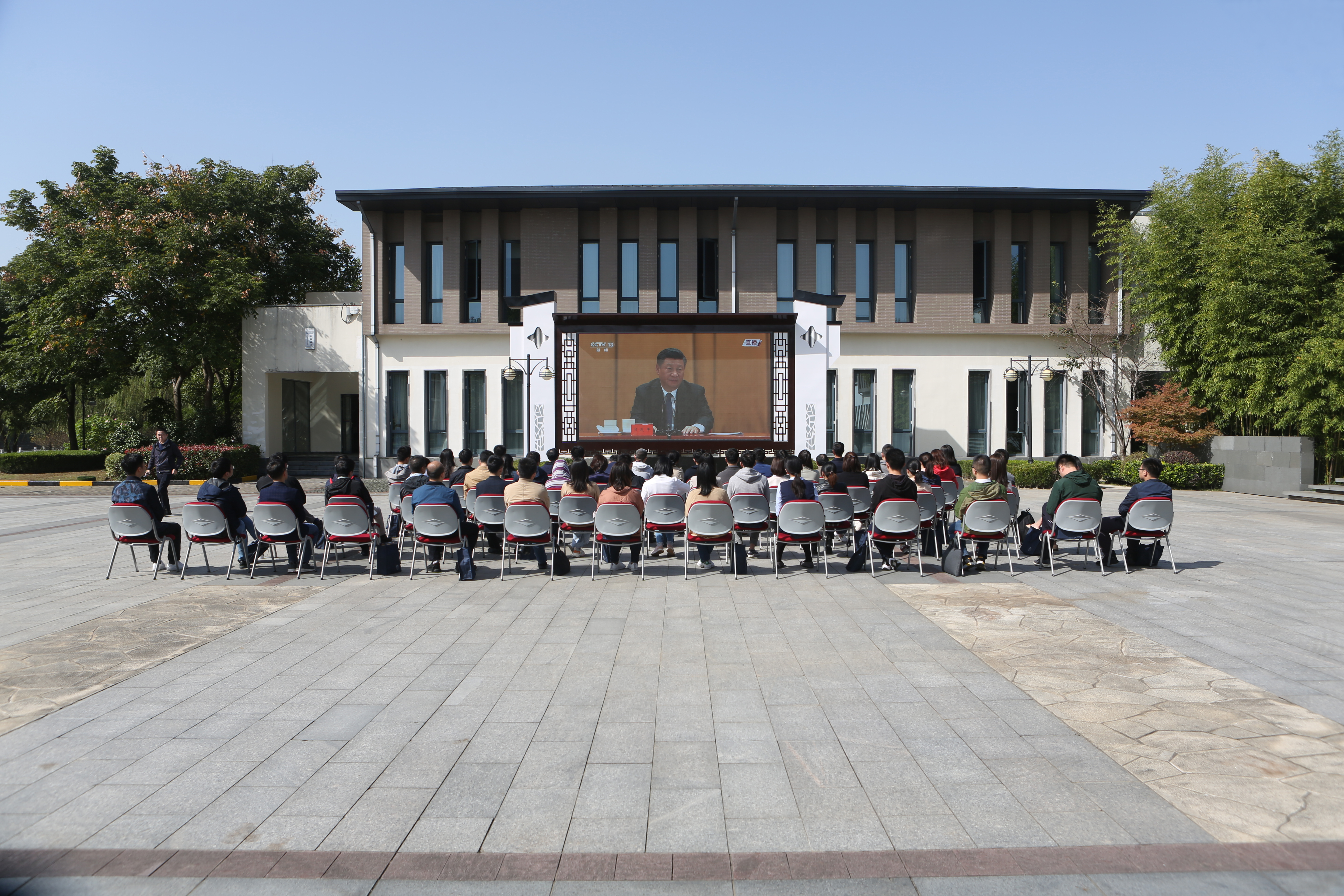 本网讯 10月23日上午,淀山湖校区管理办公室党支部与第4期青年干部培训班党支部的全体党员,在校区教学楼广场集体收看纪念中国人民志愿军抗美援朝出国作战70周年大会,学习近平总书记在大会上发表的重要讲话。