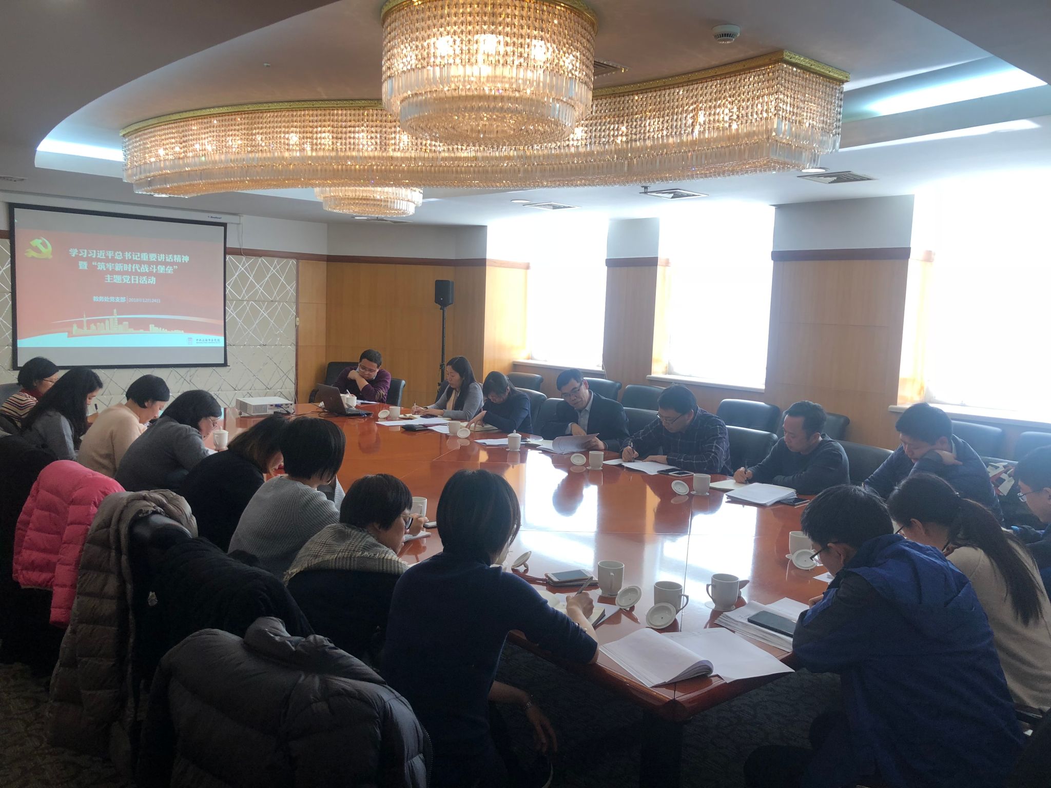 本网讯 12月24日上午,教务处党支部组织开展了学习习近平总书记在庆祝改革开放40周年大会上的重要讲话精神暨“学习贯彻《中国共产党支部工作条例(试行)》 筑牢新时代战斗堡垒”主题党日活动。副校院长曾峻以普通党员的身份参加活动。