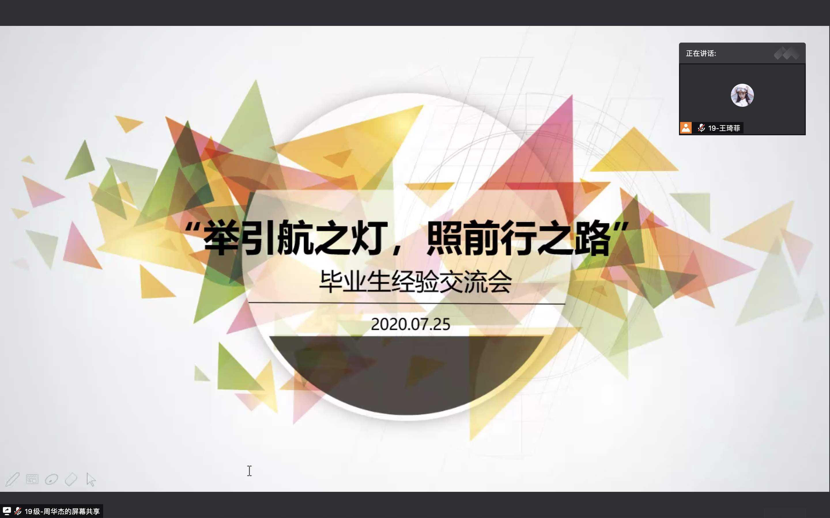 本网讯 7月25日,由我校团委、研究生部主办,研究生会承办的“举引航之灯,照前行之路”线上毕业生经验交流会成功举行。本次交流会分为考博、考公/事业编、国企以及私企工作经验分享四个板块,考博板块邀请到了目前就读于复旦大学的学姐以及刚被被华东理工大学录取的学长,其余三个板块邀请到了四名经验丰富的毕业生。