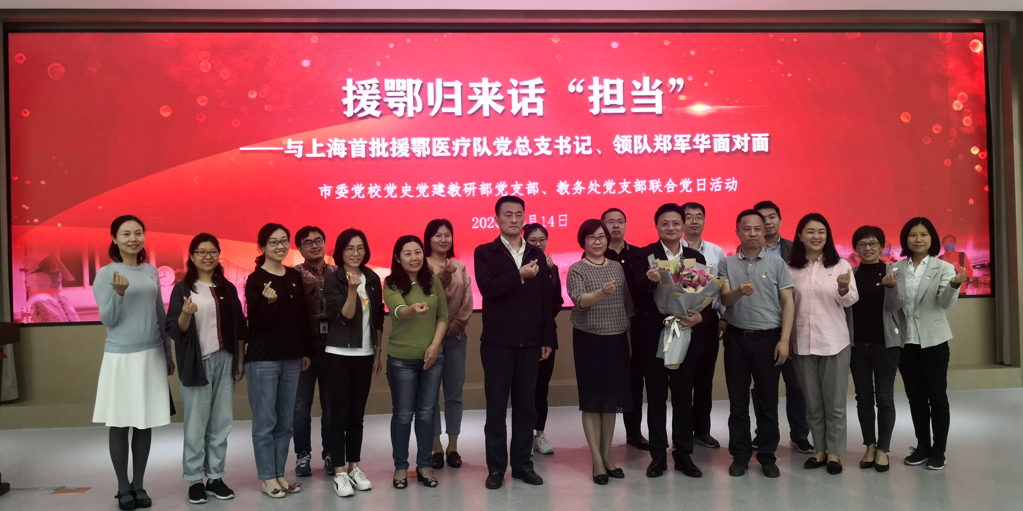 本网讯 新冠无情,人间有爱;责任担当,医者仁心。5月14日下午,党史党建教研部党支部与教务处党支部在红色上海主题教育馆举行援鄂归来话“担当”联合党日活动。活动特邀上海市第一人民医院副院长、上海首批援鄂医疗队临时党总支书记和领队郑军华与大家一起分享了他的援鄂经历。