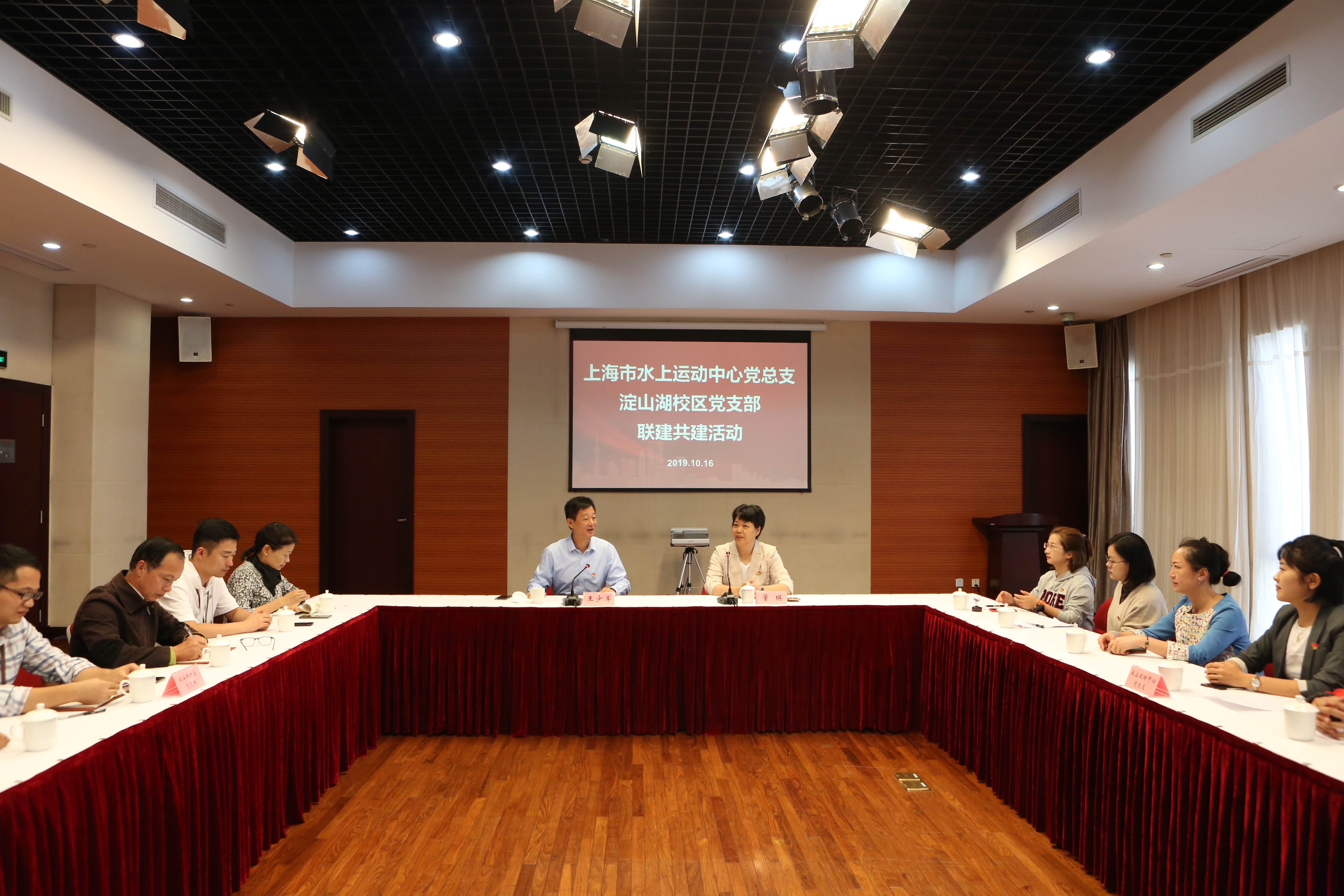 本网讯 10月16日,为深入学习贯彻习近平总书记在庆祝中华人民共和国成立70周年大会上的重要讲话精神,淀山湖校区党支部与上海市水上运动中心党总支在教学楼多功能厅开展联建共建活动,以联建共建为动力,深入推进基层党建的实效性,提升工作整体水平。