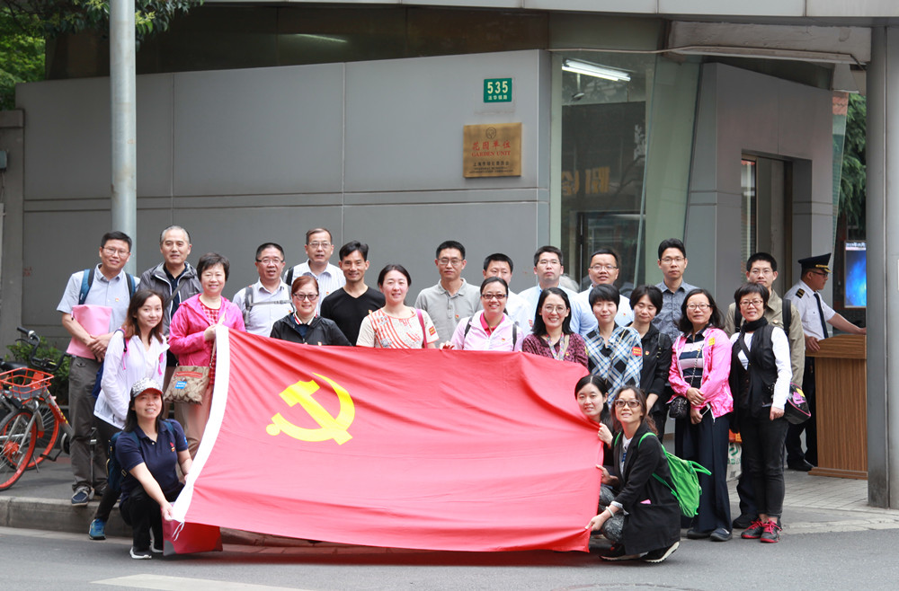 活动第二站是中国共产党的诞生地——中共一大会址。兴业路上人潮涌动,可见在党的生日前夕到党的诞生地来瞻仰学习已成为很多党员同志的共同选择。大家安静地等候,又认真检查了胸前佩戴的党员徽章,怀着崇敬的心情在会址前集体合影,表达了不忘初心向前进的决心。