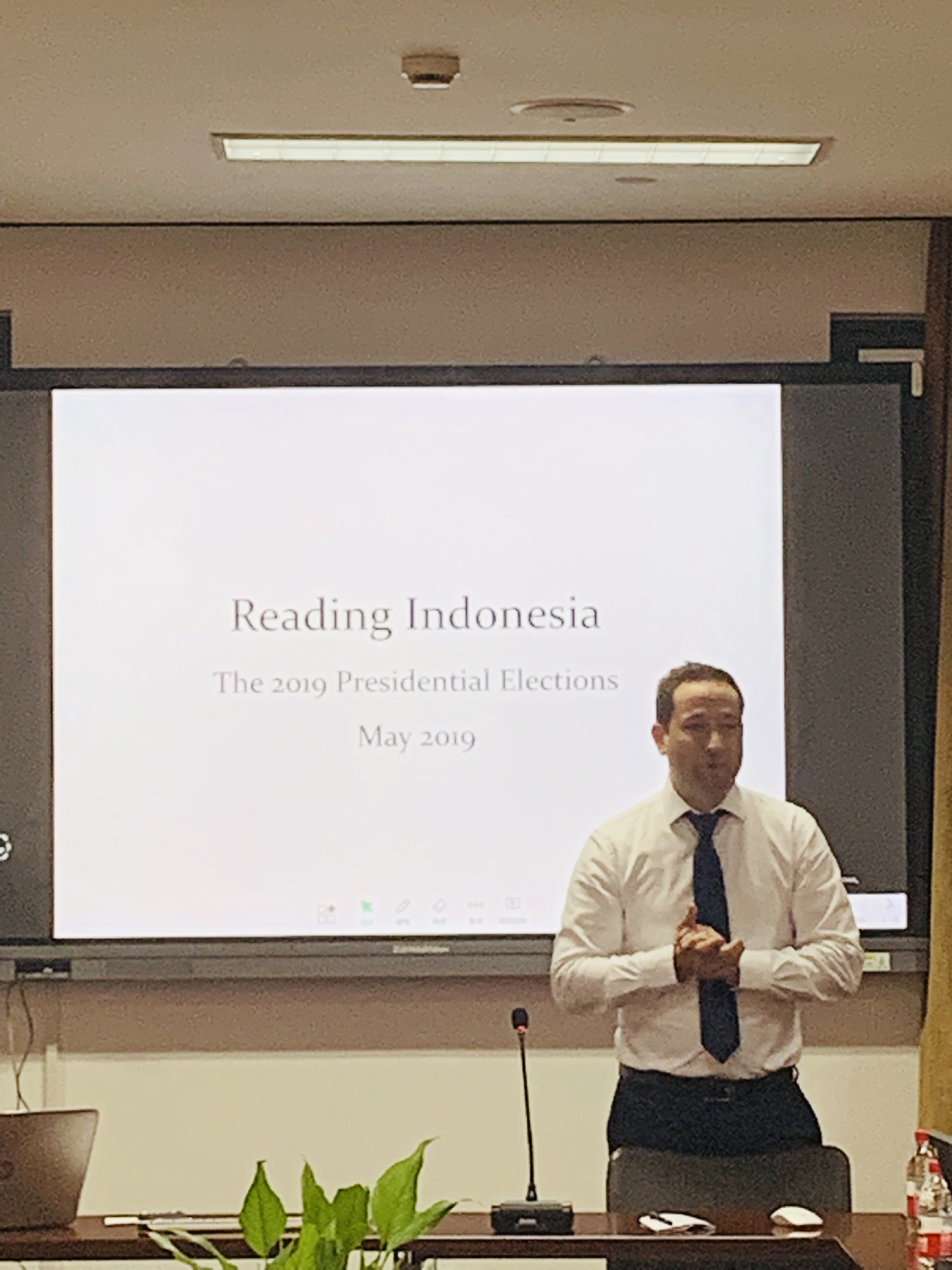 本网讯 为进一步加强学术交流与合作,增强相关科研人员的研究能力与学术水平,5月21日上午,上海社科院信息研究所与我校科社教研部在上海社科院分部联合举办了双周学术报告会。会议邀请了英国利兹大学政治与国际研究学院东南亚政治学副教授亚当·泰森博士做题为“评估2019印度尼西亚总统选举”的学术报告。两部门相关科研人员、研究生及部分教师共约30余人参加了会议。