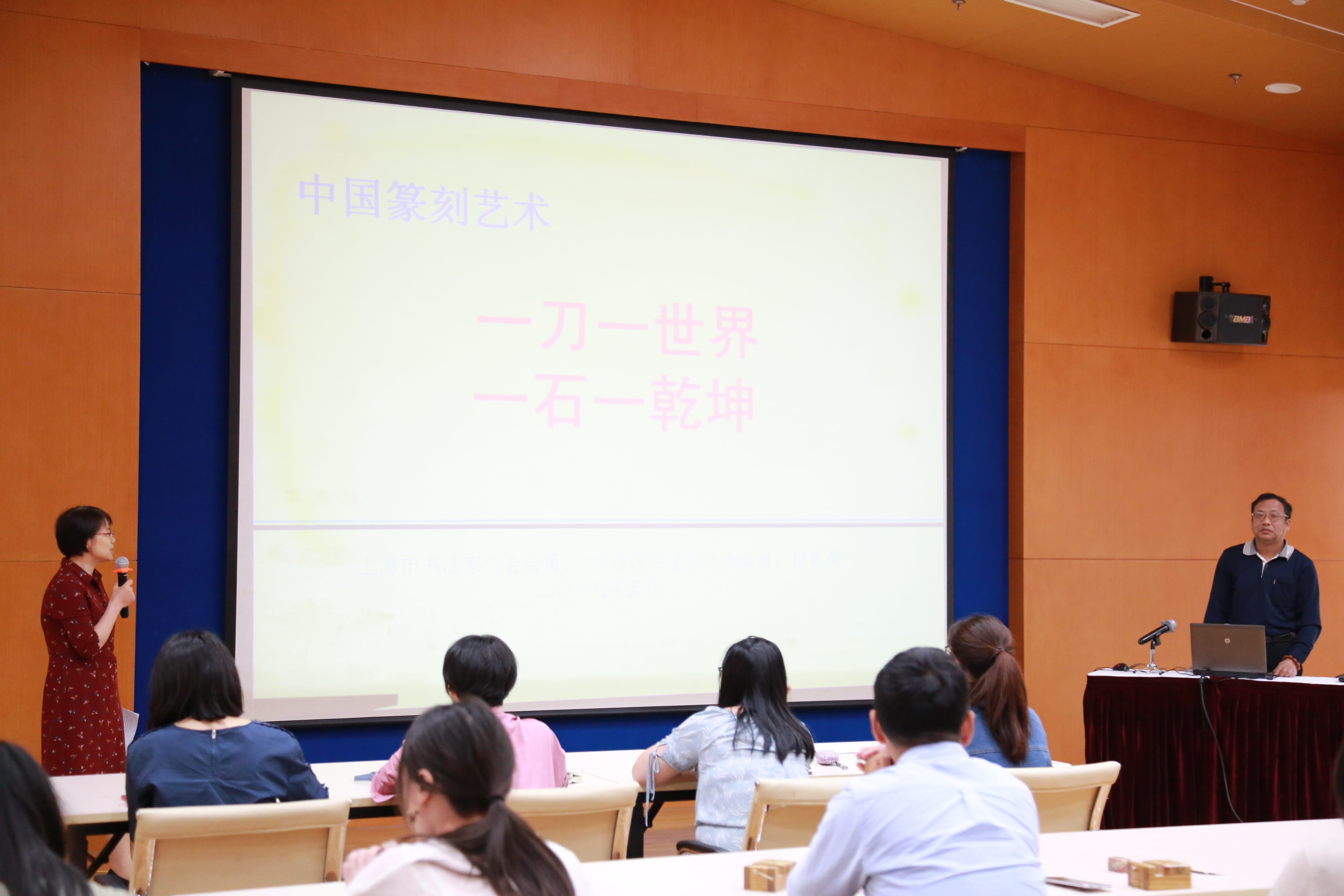 本网讯 5月21日中午,第六届校院读书月系列活动之一图书馆海尚讲堂第三期在文体中心文艺沙龙举行,本期海尚讲堂由图书馆和工会合办,讲座主题为“一刀一世界、一石一乾坤”。活动吸引了本校教职工共30余人参加。