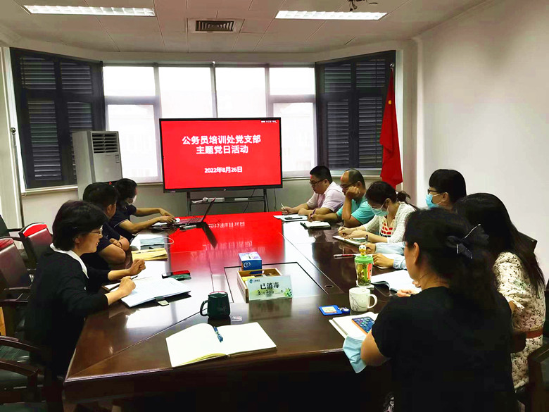 本网讯 按照校(院)机关党委要求,8月26日下午,公务员培训处党支部组织全体党员开展主题党日活动,深入学习习近平总书记在省部级主要领导干部专题研讨班上的重要讲话精神。