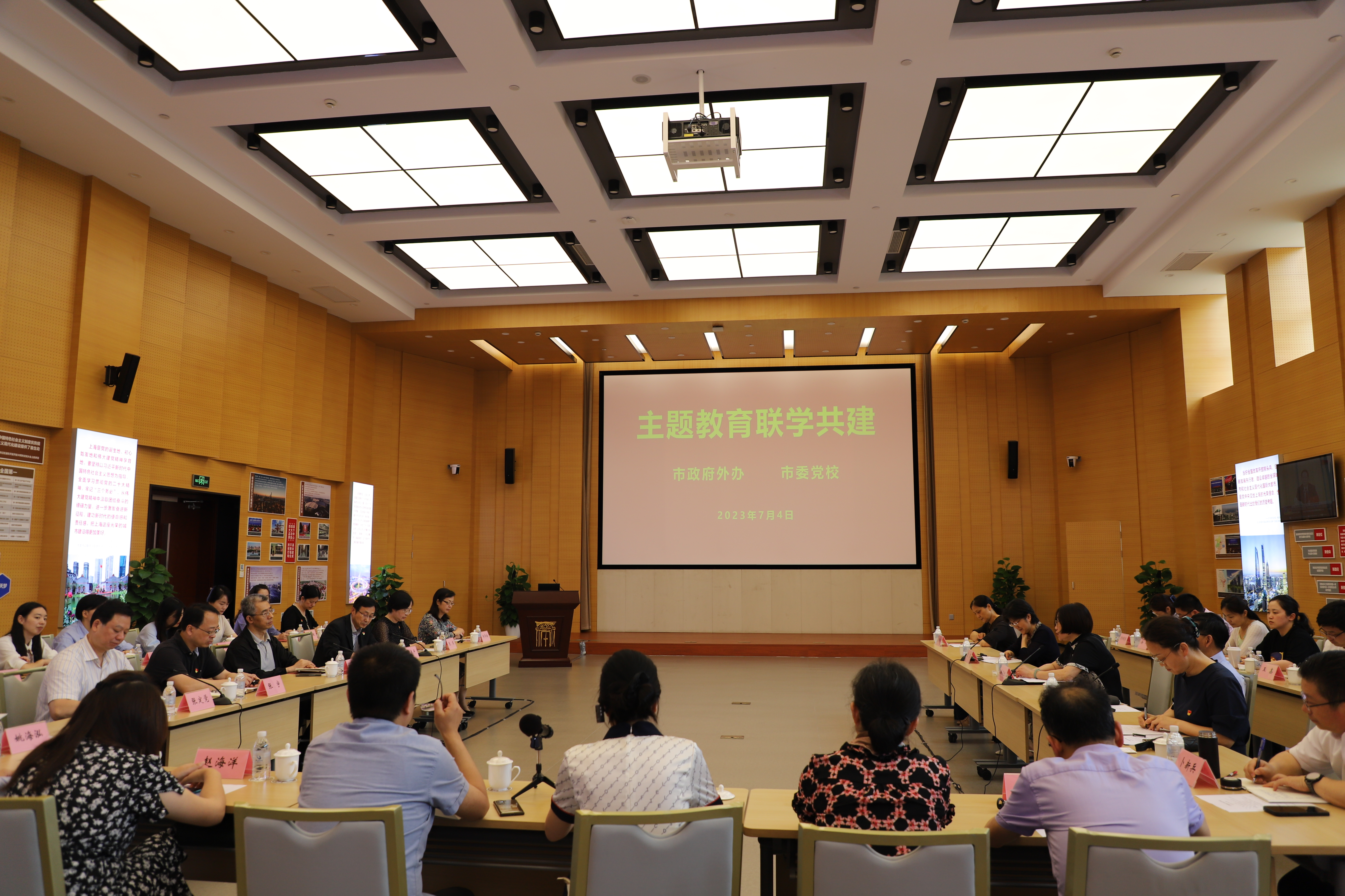 本网讯 7月4日下午,校(院)外事处党支部、公务员培训处党支部、马克思主义学院党支部与市外办欧非处党支部、美洲处党支部和秘书处党支部开展主题教育联学共建。副校(院)长梅丽红主持,市外办副主任刘光勇出席。