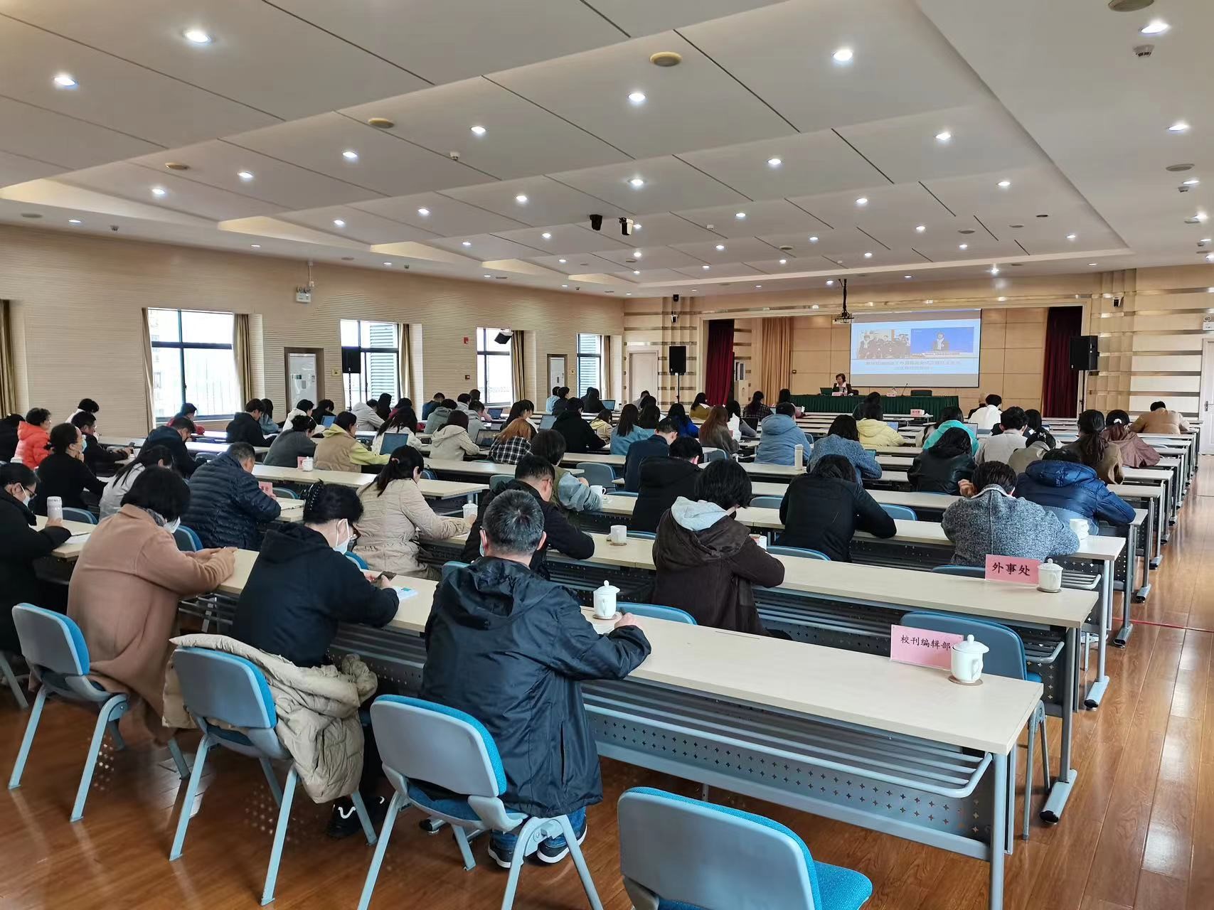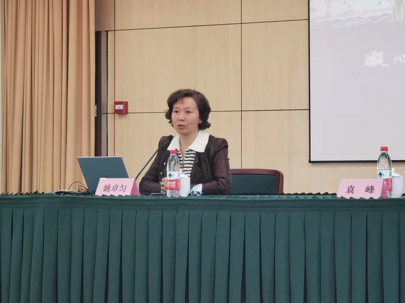 本网讯 3月21日,研究生部邀请第十四届全国人大代表、民盟上海市委专职副主委姚卓匀开展题为“2023年全国人代会精神解读”的专题讲座。会前,梅丽红副校长与姚卓匀亲切会面、交流。讲座由研究生部主任袁峰主持,外事处、校刊编辑部、图书馆、研究生部党支部全体党员及学术型在校研究生参加了报告会。