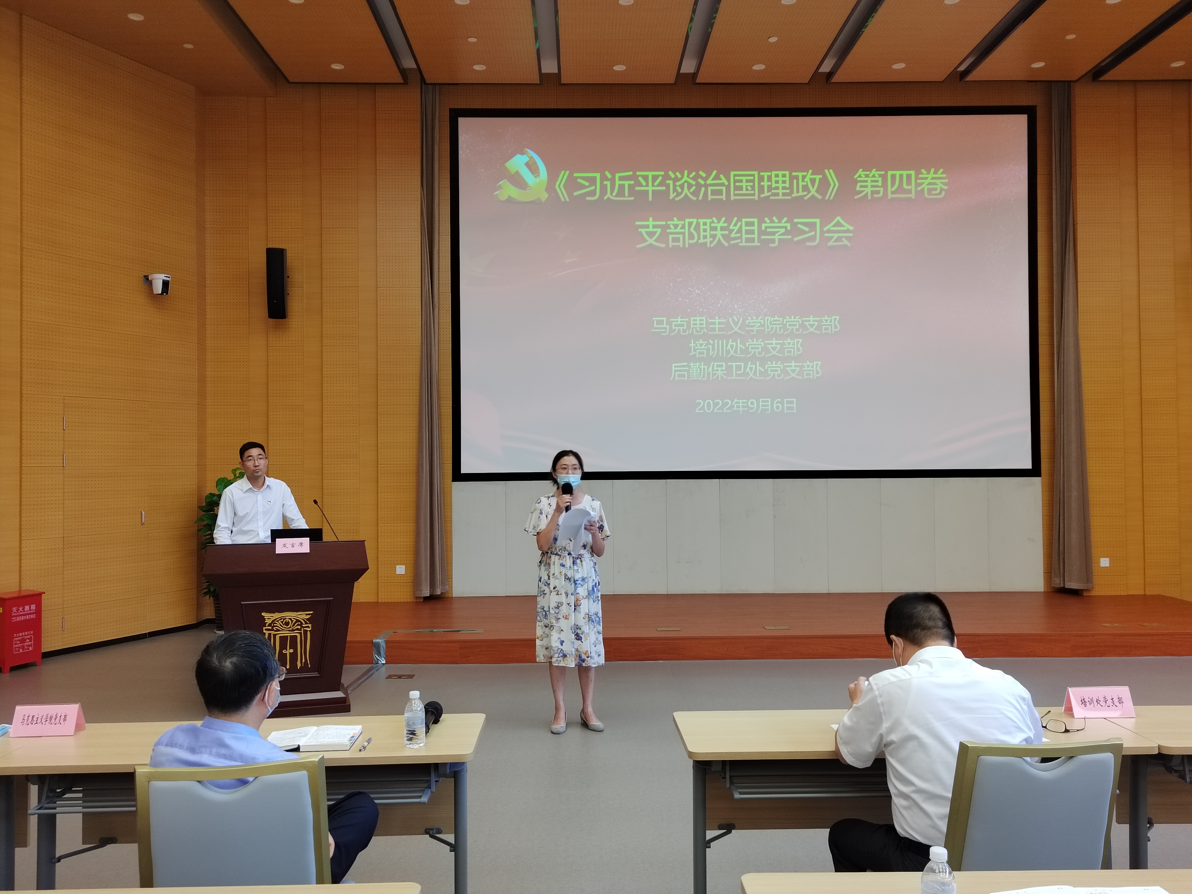 9月6日中午,培训处党支部和马克思主义学院党支部、后勤保卫处党支部一起联组学习《习近平谈治国理政》(第四卷),邀请马克思主义学院青年教师訾阳按照培训处新课简易程序进行试讲,支部党员学习交流心得体会,然后进行试讲评课。在交流体会阶段,培训处党支部徐琳从把学习《习近平谈治国理政》第四卷与学习第一卷、第二卷、第三卷贯通起来,分享学习收获;后勤保卫处党支部马哲宾结合部门特点和工作经验,交流了心得体会。在试讲评课环节,马克思主义学院党支部党员们从“用学术讲政治”角度评课,对课程内容、讲授重点等进行了优化;培训处党支部党员们从学员角度评课,对课程形式、授课方式等进行了优化,并从课程可听性角度谈了自己的听课感悟。
