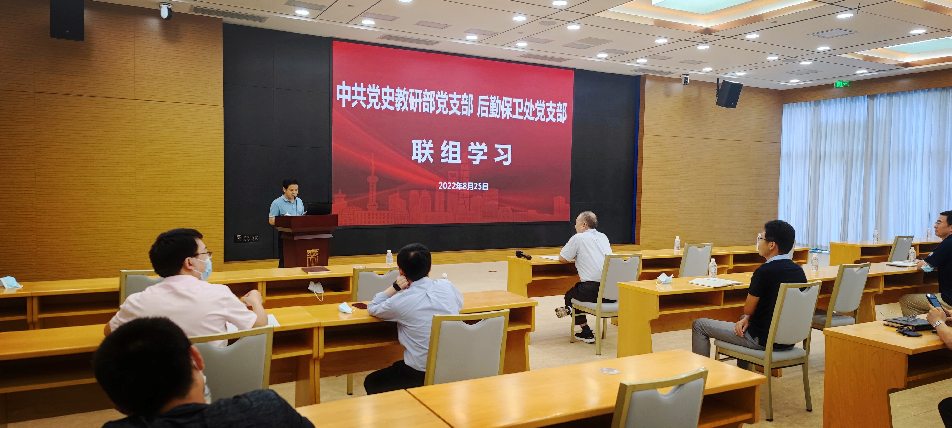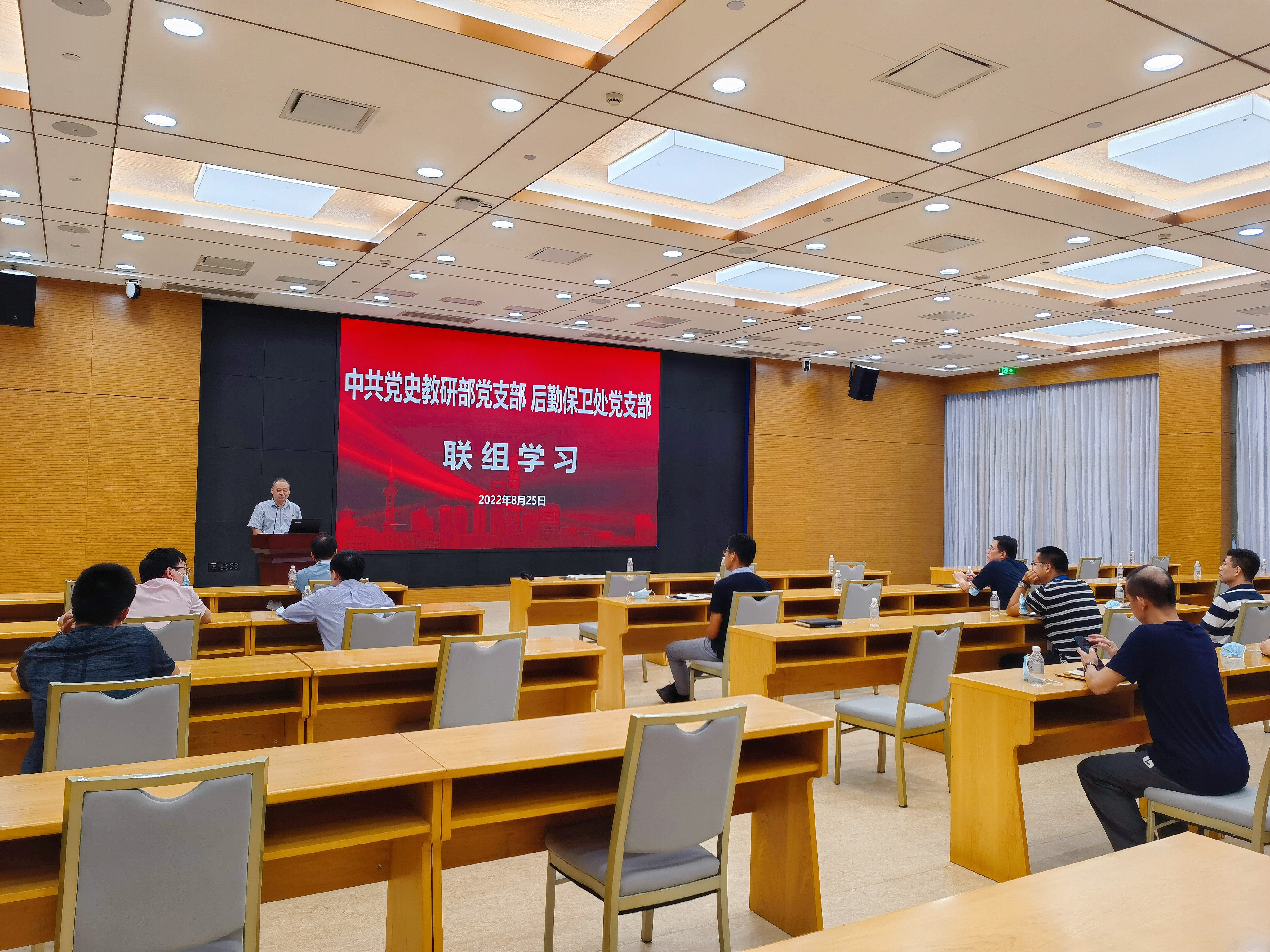 本网讯 8月25日下午,中共党史教研部党支部与后勤保卫处党支部联组学习习近平总书记在省部级主要领导干部专题研讨班上的重要讲话,开展主题党日。在中共党史教研部党支部书记王瑶的主持下,主题党日通过“主题报告+分享体会”的方式,两个支部全体党员充分认识到习近平总书记讲话的重要性,对即将召开的党的二十大进行理论与思想的准备。