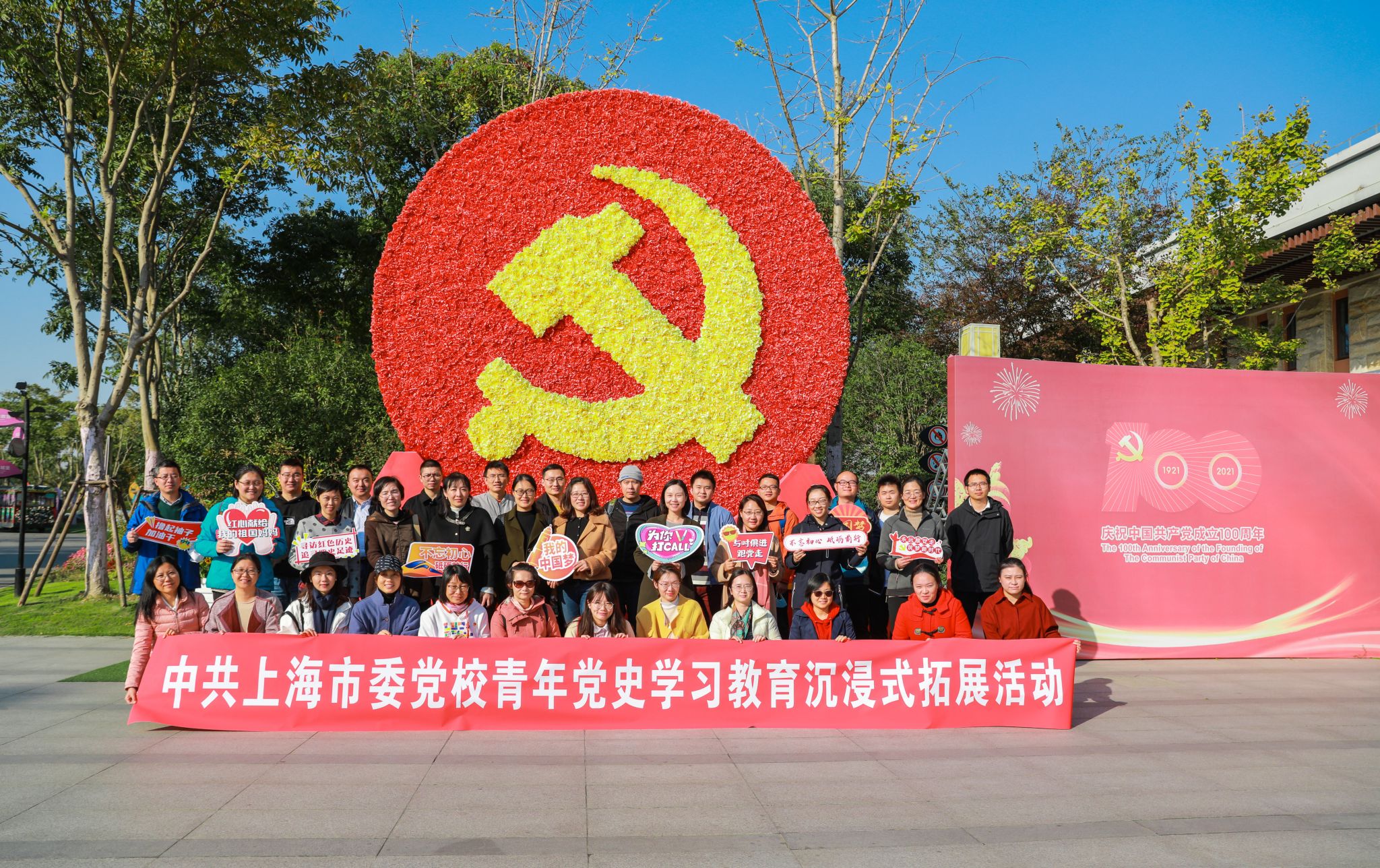 本网讯 为进一步落实党史学习教育要求,11月10日下午,校(院)青年管理人员发展联谊会、青年教师发展联谊会会员一行30余人在浦江郊野公园活力森林区演艺中心共同体验了一堂关于中共二大的生动党课——“寻找第十二人”。