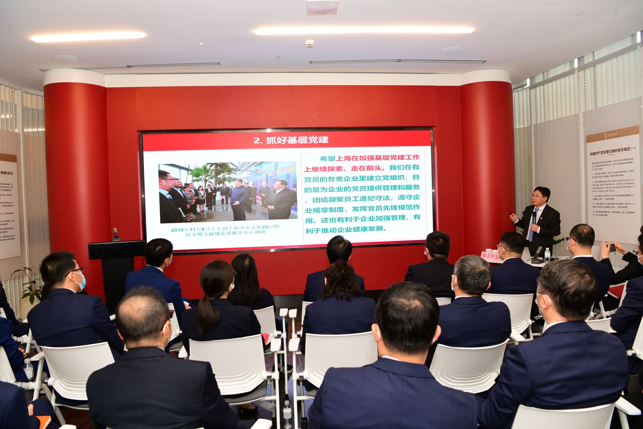 活动分为党课交流和现场考察两个阶段。第一阶段,由马克思主义学院副院长陈方刘教授和上海中心总经理顾建平代表双方进行党课交流。陈方刘教授的党课围绕《习近平在上海》系列采访实录展开,从理论上阐述了学习采访实录的重要意义、重点任务和奋力创造新时代上海发展新奇迹的具体要求。顾建平从他本人三次接受习近平总书记亲切接见的故事谈起,生动讲述了上海中心大厦从规划设计到建成使用的不平凡历程,深情回顾了习近平总书记考察上海中心大厦时的种种细节和殷殷嘱托。三年前受到习近平总书记接见的上海中心“两新”组织党员代表向大家介绍了习近平总书记来到22楼党员活动中心参加主题党日活动讨论、关心“两新”组织党员思想动态的详情。