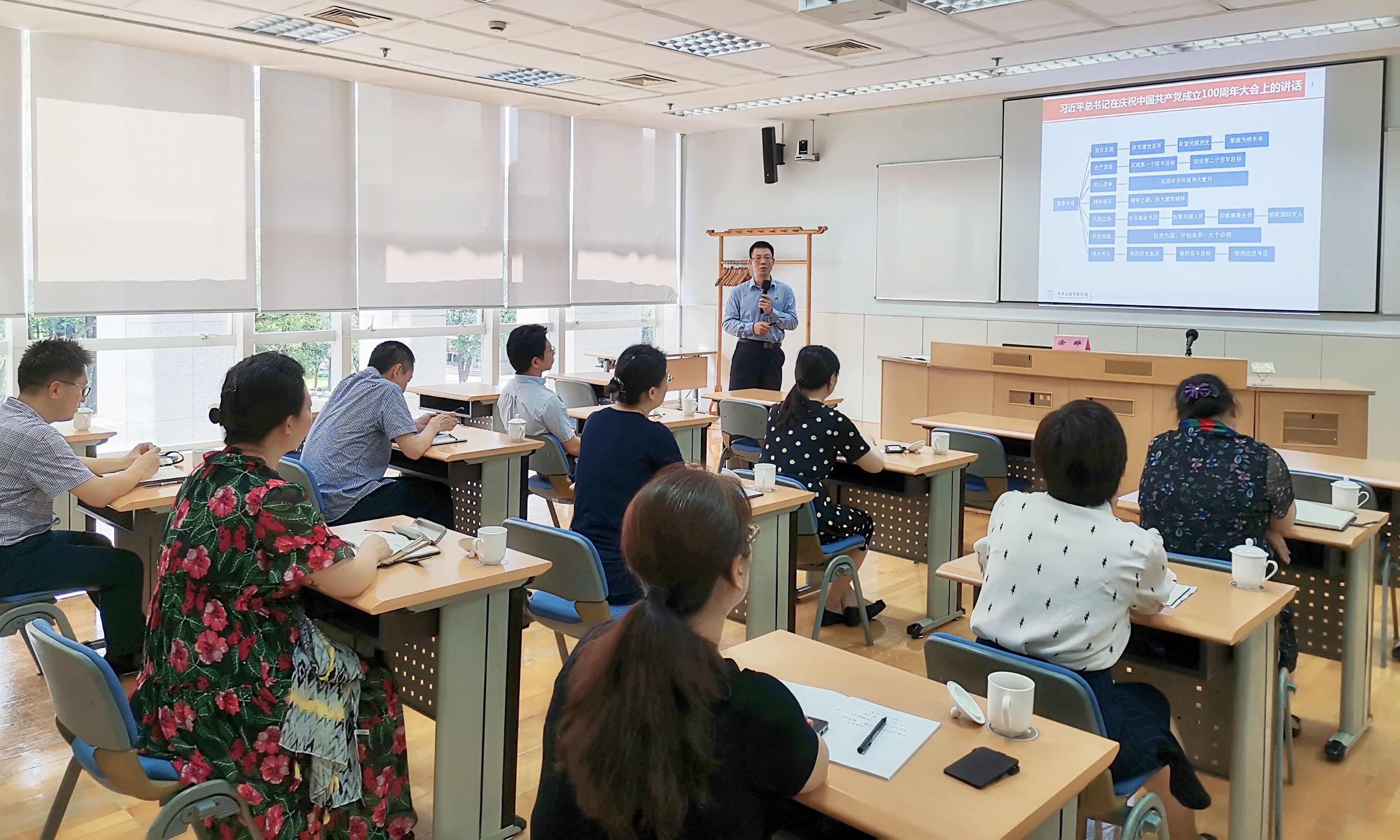 本网讯 为抓实抓细党史学习教育,进一步增强党员的使命感和责任感,7月9日下午,组织人事处党支部在海兴205教室开展支部书记讲党课活动,支部书记涂晔以“学‘七一’讲话,铸千秋伟业”为题,给支部党员上了一堂专题党课。