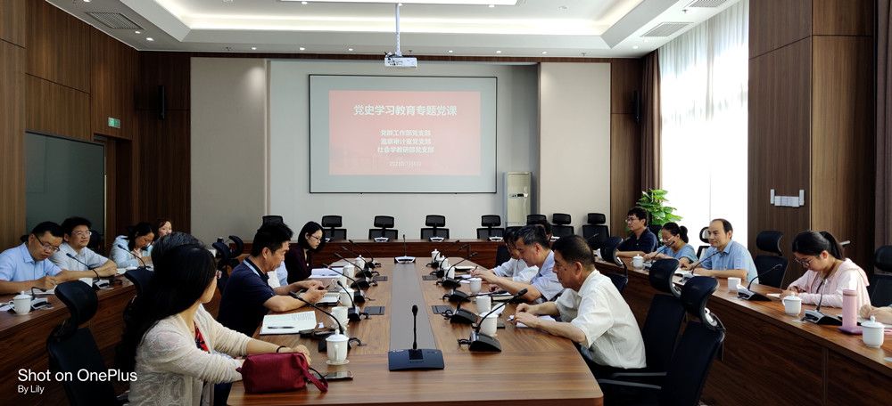 本网讯 根据校(院)党史学习教育实施方案安排,结合各党支部党史学习教育计划,7月6日上午,党群工作部党支部、监察审计室党支部、社会学教研部党支部的26名党员在海复楼101会议室一起聆听了由副校(院)长、机关党委书记李渤主讲的党史教育专题党课。第一时间学习领会习近平总书记在庆祝中国共产党成立100周年大会上重要讲话精神,把习近平总书记重要讲话精神系统融入到党史学习教育中,用历史映照现实、远观未来,引导全体党员提高站位、把握方位、找准定位,振奋迈进新征程、奋进新时代的精气神。