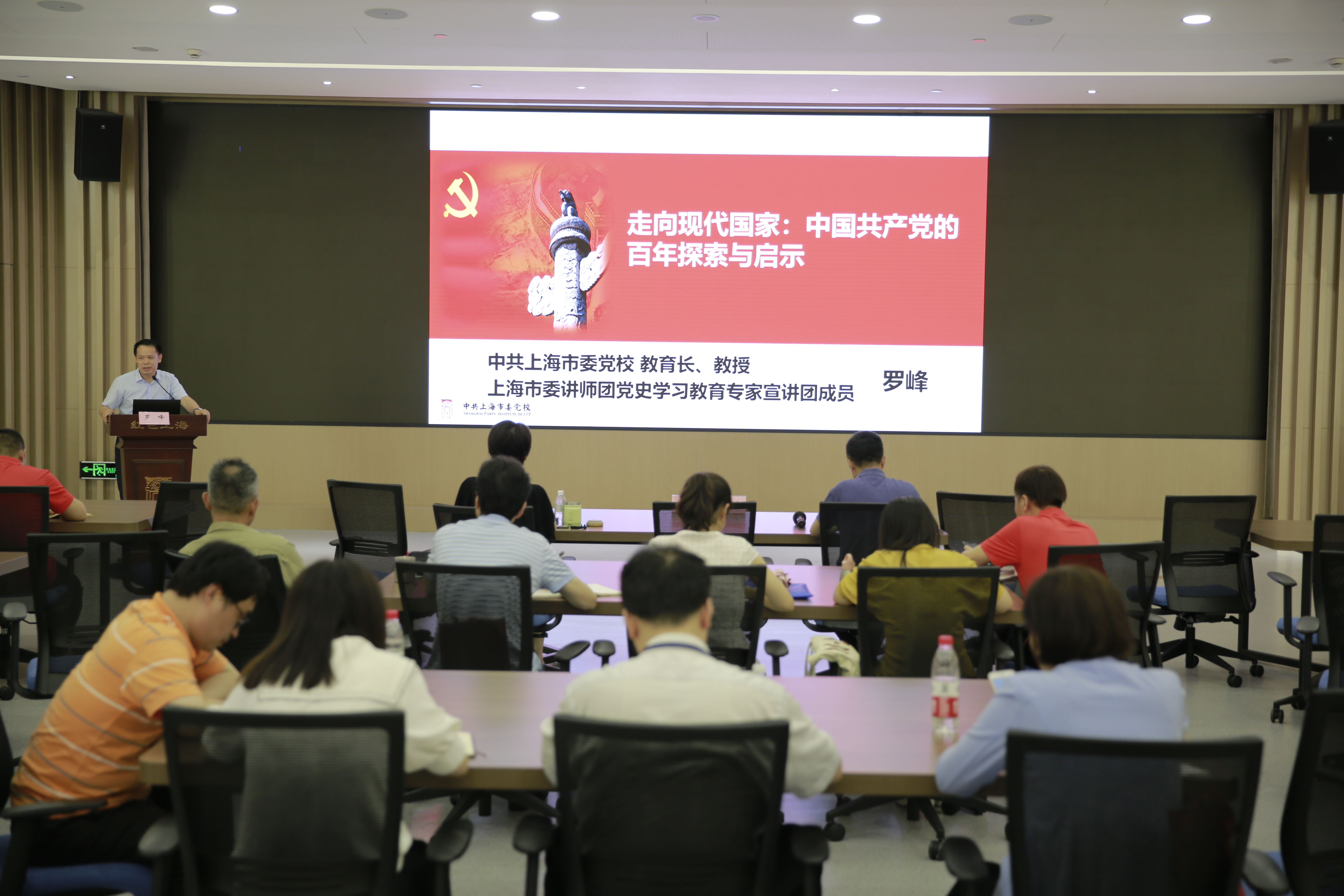 本网讯 6月28日下午,教务处党支部、公务员培训处党支部、学员工作处党支部和培训处党支部开展联合党史学习教育专题党课学习,校(院)教育长罗峰教授讲授“走向现代国家:中国共产党的百年探索与启示”专题党课。