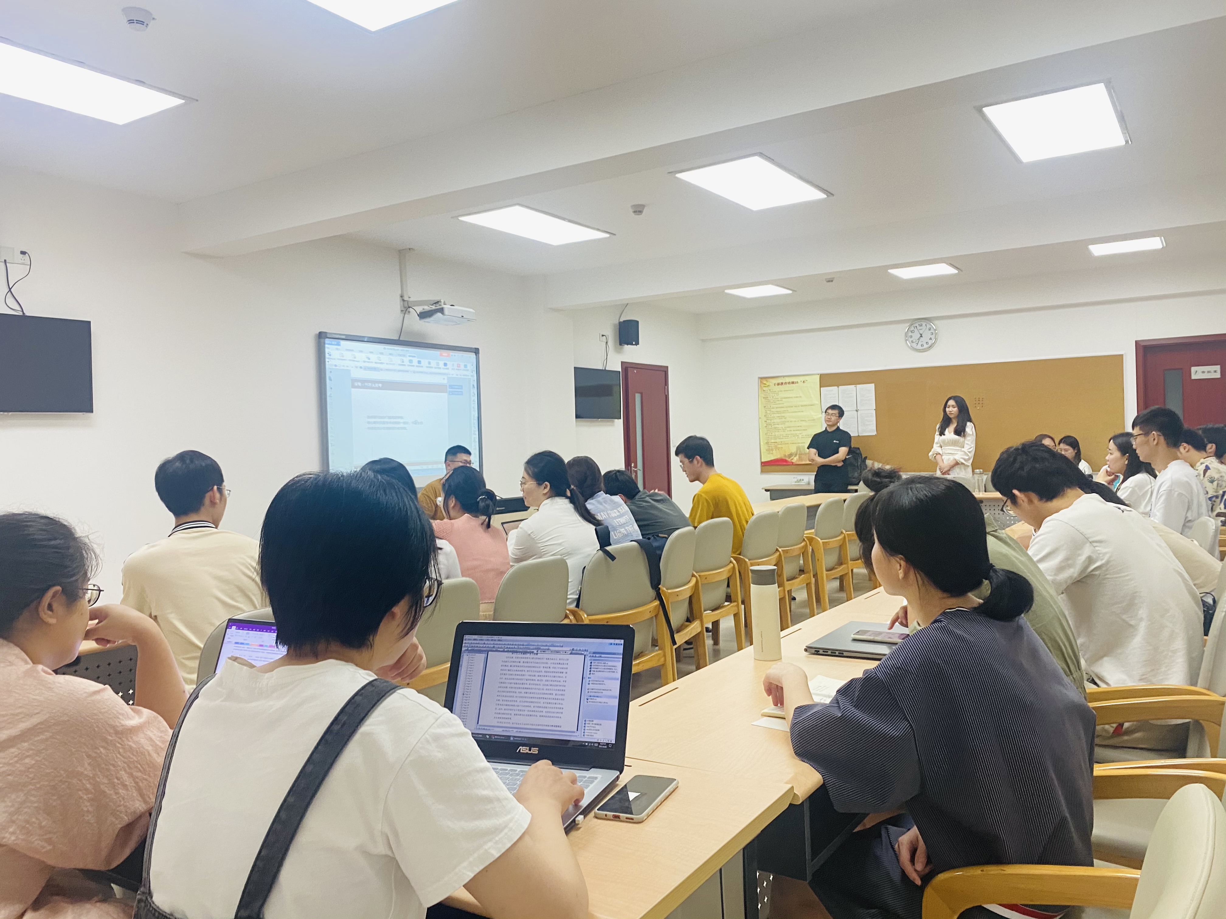本次交流会分为考博、考公和国企工作经验分享三个板块进行。在考博版块,邀请到了今年成功考入上海财经大学的黄超同学分享考博经验。黄超结合自己的备考经历,向同学们分享了申请考核制的基本流程、备考及应试等经验。在报考公务员方面,成功考入市直单位的崔岩珠同学向同学们详细介绍了国考、省考中笔试和面试的经验与技巧,成功考上选调生的史金玲同学向大家分享了选调生的备考经验;成功入职上海国企的郑水静同学和马帅同学和大家交流了实习与择业时的心得体会,在如何做好就业准备等方面提出了中肯的建议。