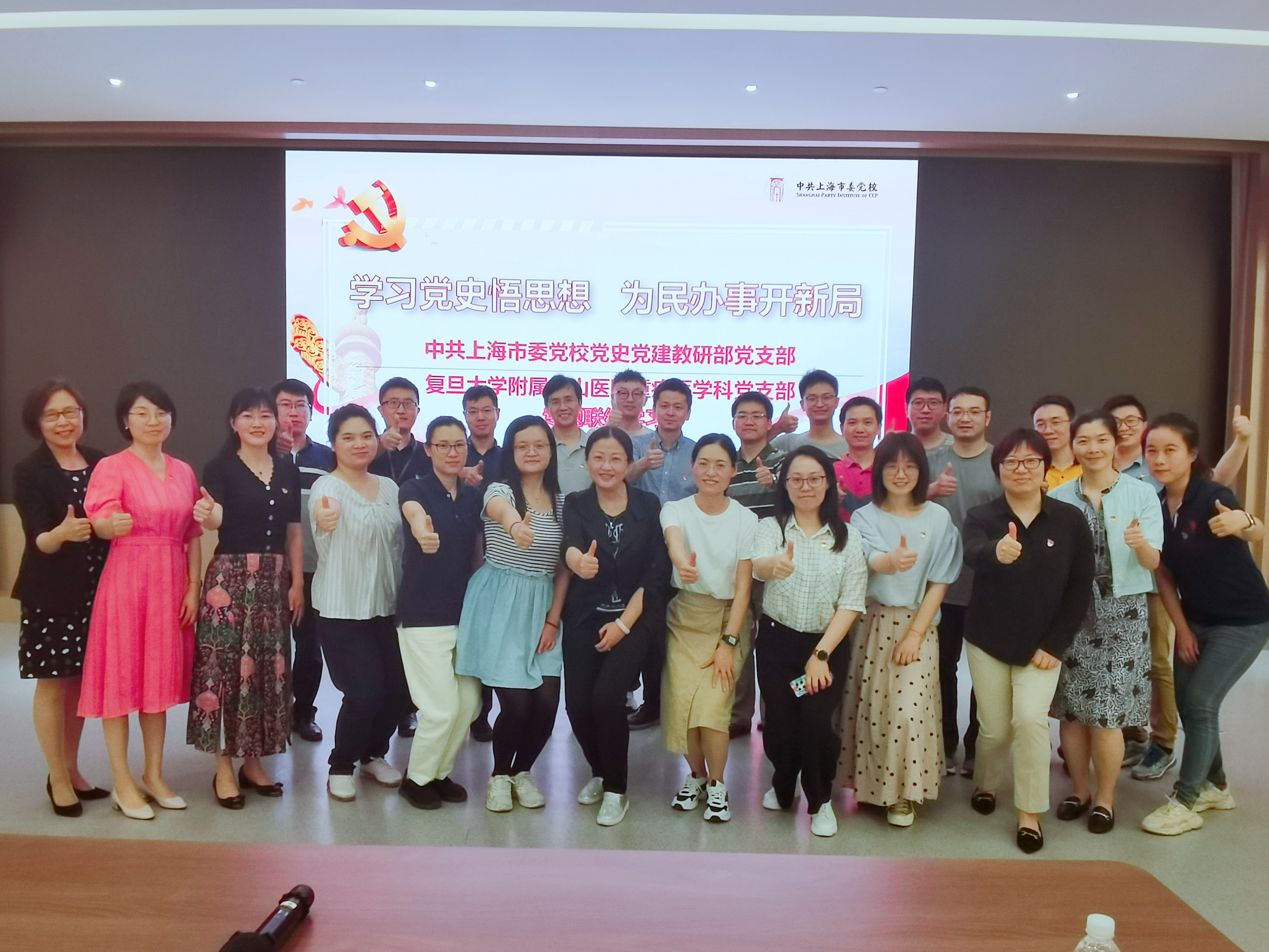 本网讯 6月8日晚,党史党建教研部党支部与中山医院重症医学科党支部在红色上海主题教育馆进行了“学习党史悟思想 为民办事开新局”联组学习,教研部副教授罗俊丽主持,部分党员出席。
