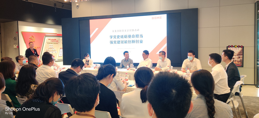 波克科技股份有限公司董事长徐仁彬,副总经理、党支部书记刘忠生介绍了企业概况、经营现状及未来发展愿景,围绕“党建引领赋能业务,创建可持续发展战略”等,详细介绍了公司运用“党建+发展”“党建+服务”“党建+公益”“党建+示范”等多种形式,把党建工作的“软实力”变成企业发展的“硬支撑”,引领、带动企业沿着中国特色社会主义的方向不断发展的历程,重点介绍了通过党员“亮身份、比贡献”在各个岗位上发挥党员的先锋模范作用,强化党组织对广大青年员工的政治引领的经验做法。在座谈交流中,徐建刚对“党建在波克是一种生产力”的理念深表赞许,结合党史经验和智慧点评了波克公司管理特色和亮点,肯定波克科技股份有限公司作为一家有着文化意识形态属性和高科技属性的互联网企业,不仅通过汲取党史智慧、加强党建促进企业自身发展,还作为首批上海市互联网企业党建工作示范点,在当前火热开展的党史学习教育中,自觉承担向全社会、向广大青少年讲好红色故事、共庆百年华诞的社会责任。领导科学教研部毛军权教授及其团队对包括波克科技股份有限公司在内的22家典型科技企业的创新创业案例进行了深度调研和学术研究,在市委组织部等单位的直接指导下形成了《活力四射,创新创业——新时代上海创新创业企业攻坚克难实践案例》的成果并将正式出版,列入校(院)重点教材。这是党校人深入基层、服务实践、服务基层党建和创新创业的实际行动,也是体现了校(院)开展“我为群众办实事”主题实践的特色优势。