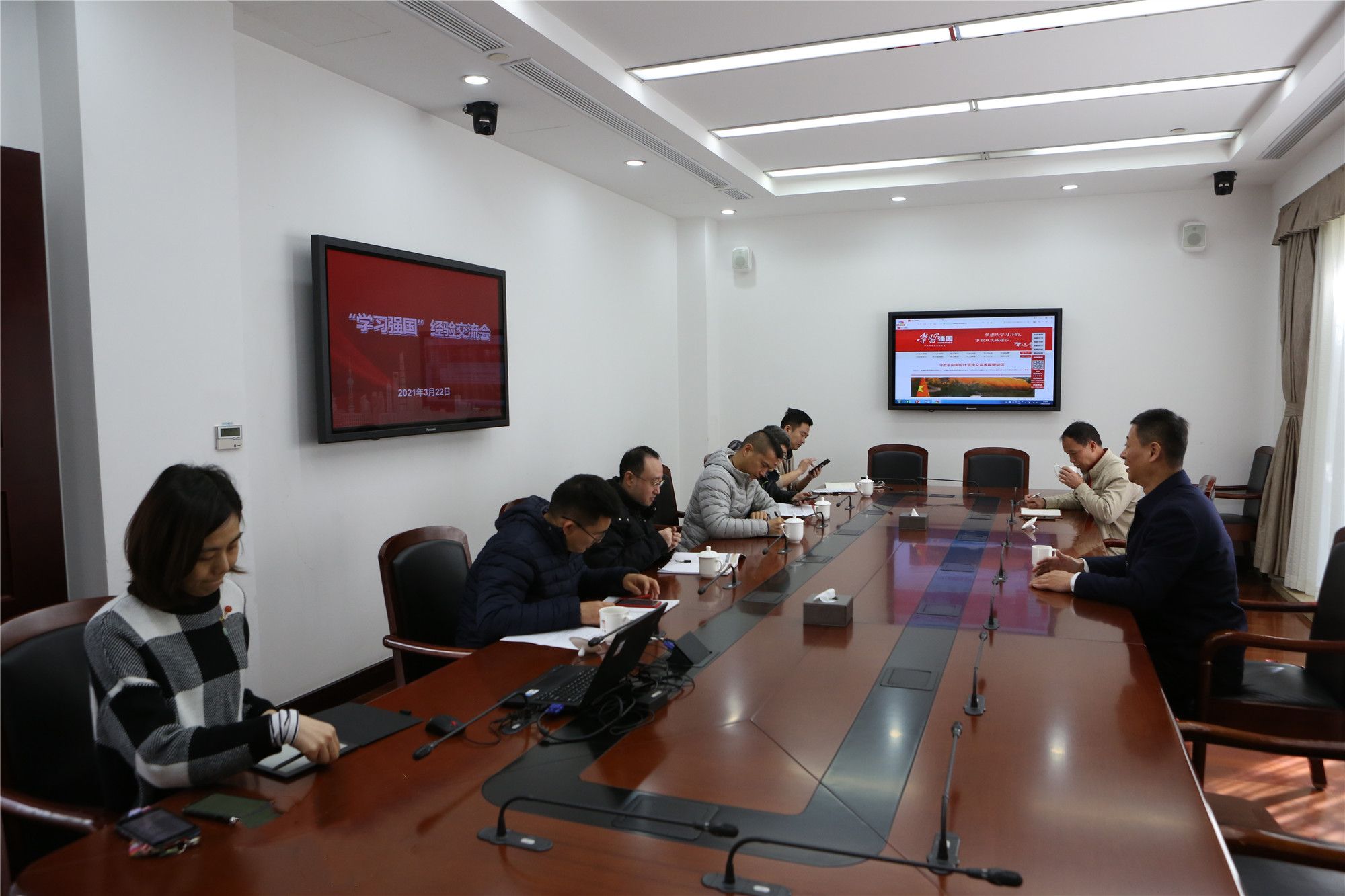 支部要求所有党员每天都要挤出时间上线学习,贵在经常、融入日常。将“学习强国”与“三会一课”、主题党日、学习型党支部建设和日常工作等紧密结合起来。在学用结合上,疫情期间,淀山湖校区充分利用“强国视频会议“功能,多次召开部门线上会议,取得良好的效果。大家表示,在党史学习教育中,要再接再厉,继续保持“学习强国”的排名率和活跃度,以建设“四强”党支部的优异成绩迎接中国共产党百年华诞。