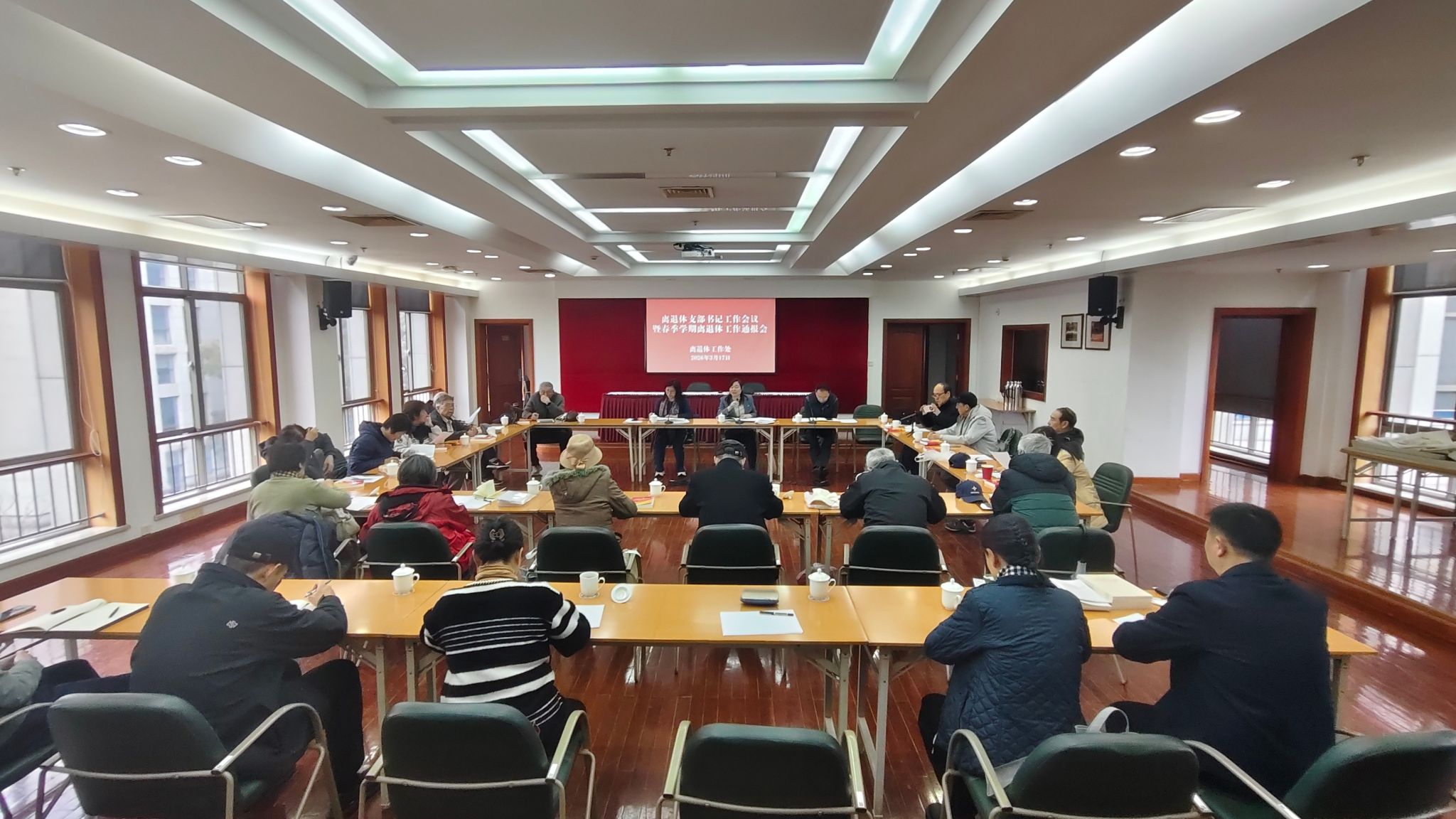 3月17日,离退休党支部书记工作会议暨春季学期离退休工作通报会举行,传达全市老干部工作会议精神,系统部署离退休教职工党建与服务管理重点工作。16个离退休党支部书记及离退休工作处全体人员参会。