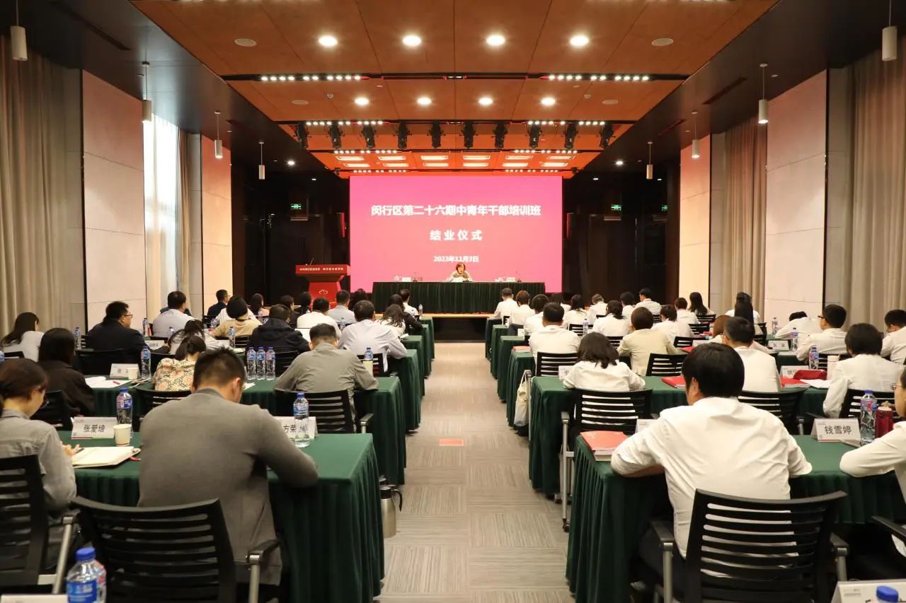当天,闵行区第26期中青年干部培训班圆满结业。胡芳,闵行区委组织部副部长郑毅,区委党校常务副校长张英霞向学员颁发结业证书。班委代表曹崴和学员代表谢婷妍作交流发言。区委党校相关领导、全体教师以及闵行区第26期中青年干部培训班全体学员、跟班组织员参加会议。