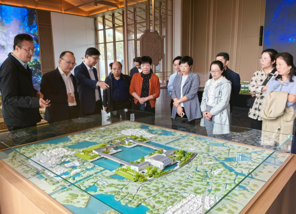 与会人员一行首先来到连接青浦、吴江的元荡岸线进行实地考察,详细听取元荡岸线生态修复工程和元荡慢行桥建设等相关情况介绍,通过元荡岸线生态修复这一跨域河湖水生态综合治理的生动案例,近距离感受水岸联动的绿色生态修复过程中呈现的一体化生态建设示范效应。随后,又来到西岑科创中心展示馆,通过宣传短片、沙盘模型和细致讲解,进一步加深了对西岑科创中心“一园双核九岛三组团”空间布局的认识,充分领略了科创人文、江南典范的独特魅力。