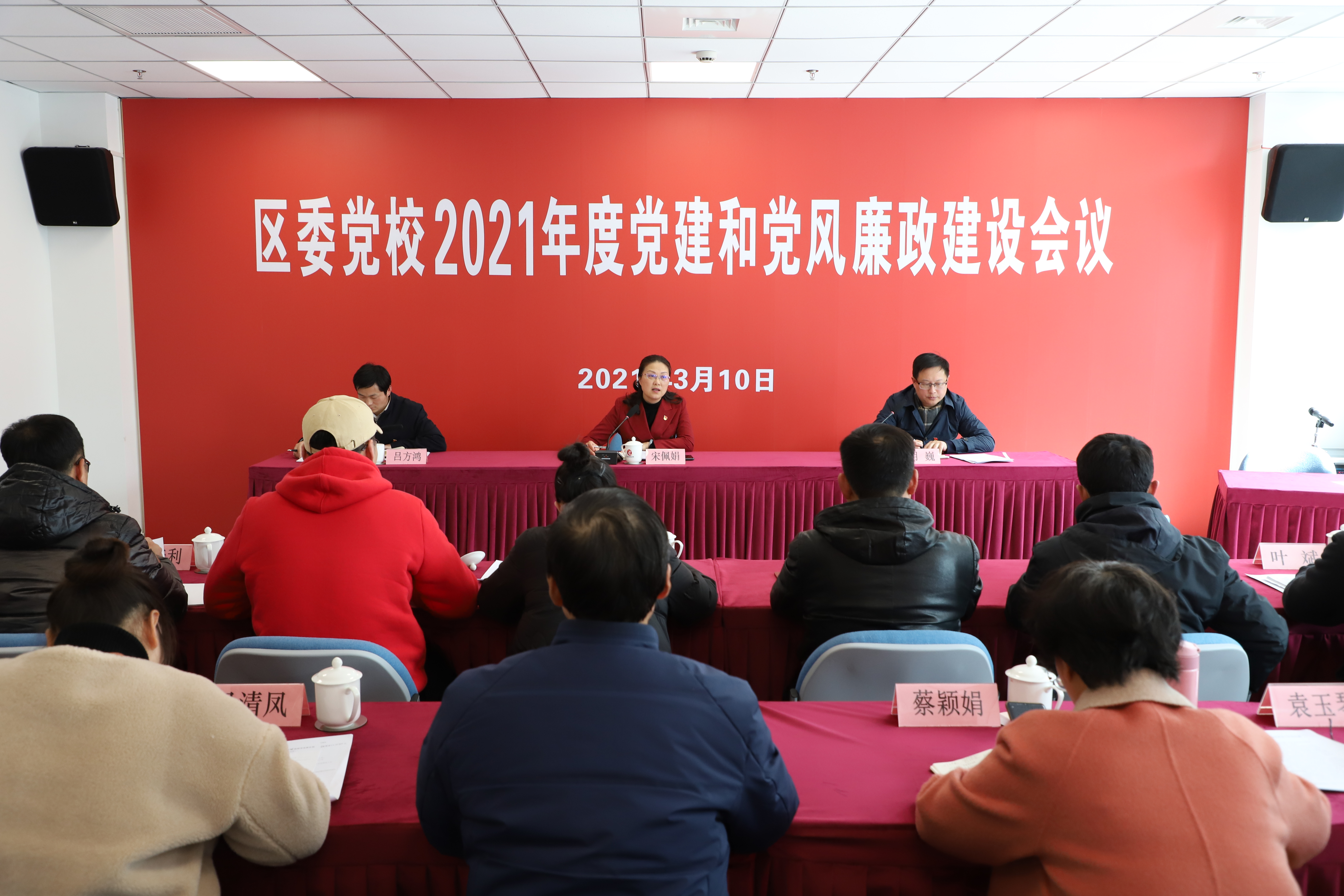 宋佩娟指出,面对新形势新任务新要求,做好2021年党建和党风廉政建设工作:一要强化思想引领,夯实基层党建工作。要始终坚持把政治建设摆在首位,按照“围绕中心抓党建,抓好党建促发展”的总体思路,聚焦建党百年、花博盛会等重要工作,紧密结合党校实际,统筹谋划,扎实开展党史学习教育,不断强化政治建设、思想建设、组织建设、队伍建设和精神文明建设,进一步夯实基层党建工作基础,为党校事业发展提供坚强政治保障。二要坚持全面从严治党,加强党风廉政建设。要始终坚持“严”的主基调,严格落实党风廉政建设责任制,严格遵守政治纪律和政治规矩,严格执行学校规章制度,以优良的党风政风树立党校良好形象,以永无止境的追求、主动作为的担当、勠力同心的姿态,努力推动我校党建和党风廉政建设工作再上新台阶,各项工作取得新成效,为创造世界级生态岛建设新奇迹贡献党校力量!
