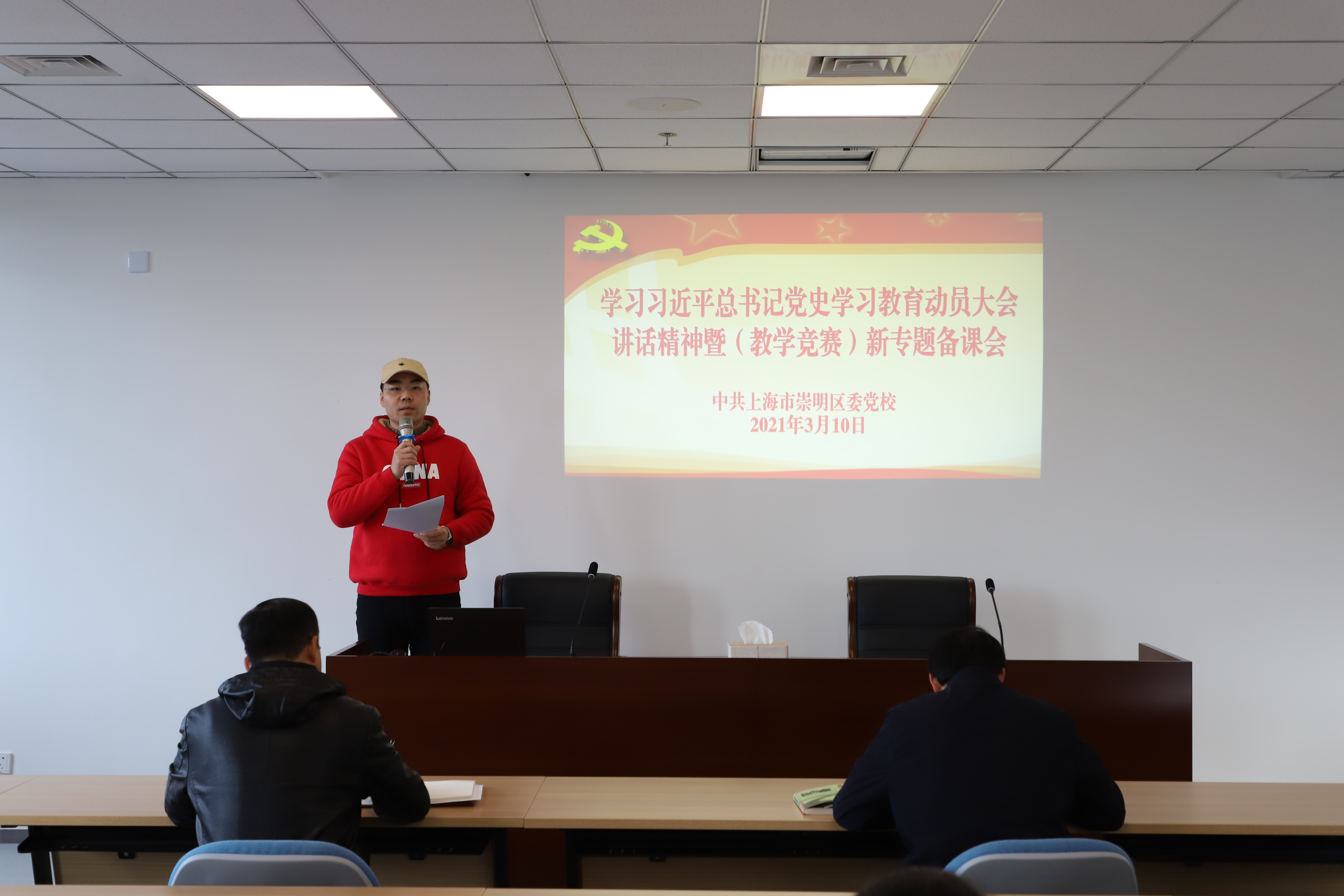 本网讯 为深入学习和贯彻习近平总书记在党史学习教育动员大会上的重要讲话精神,3月10日,崇明区委党校组织开展“学习习近平总书记党史学习教育动员大会讲话精神暨党史新专题备课会”,副校长吕方鸿、三级调研员李尧新出席并点评。