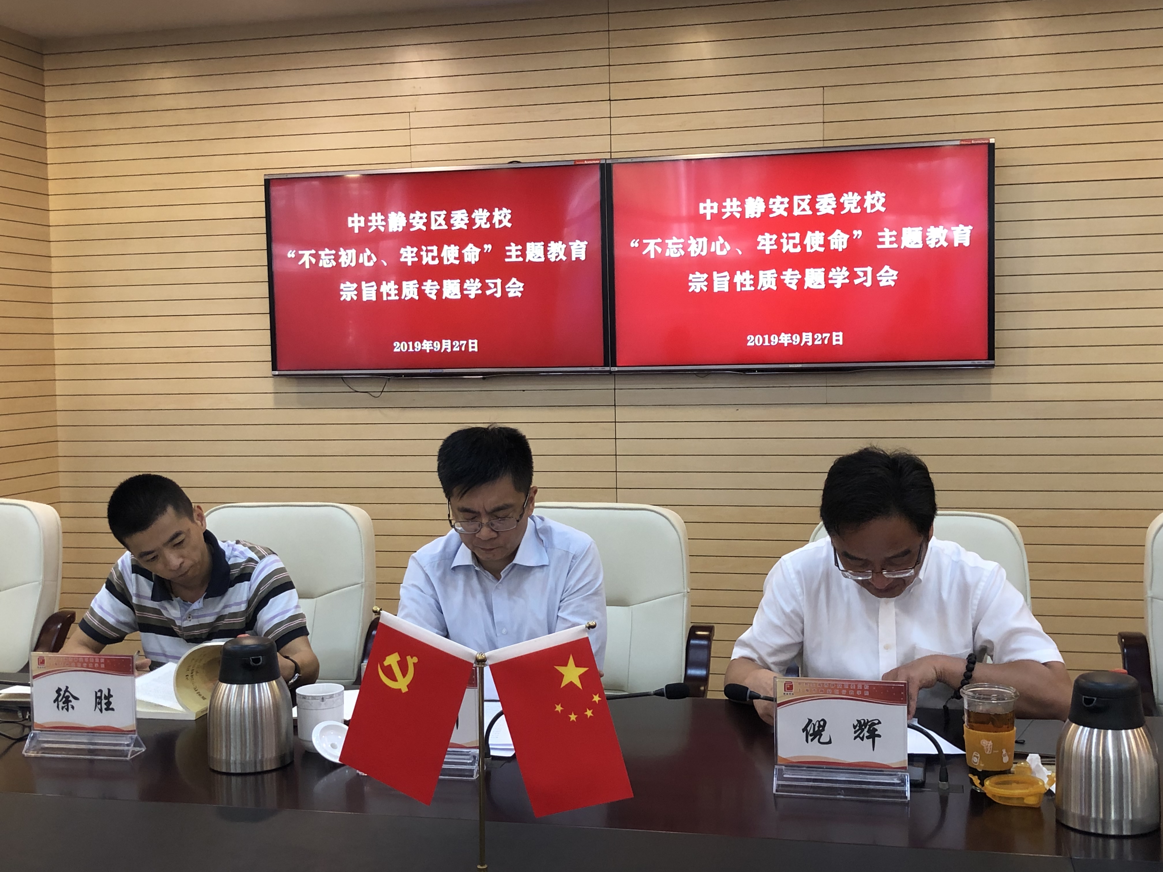 本网讯 9月27日,静安区委党校召开“不忘初心、牢记使命”主题教育第六次专题学习会,主题为“中国共产党的宗旨与性质”。校领导班子成员、支委成员参加会议,第一指导组组长任网银和工作人员陈科旭出席会议,常务副校长徐刚主持会议。