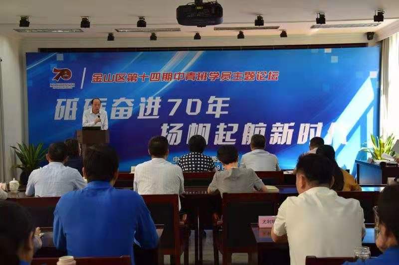 本网讯 为庆祝新中国70华诞,9月29日下午,以“砥砺奋进70载 扬帆起航新时代--庆祝新中国成立70周年”为主题,金山区第十四期中青年干部培训班首次主题论坛在金山区委党校举行。区委组织部副部长蒋雅红出席论坛。区委党校常务副校长孙秀强致辞。区委党校副校长郜工农、刘娥苹,来自西南片区党校协作体成员单位的部分领导和老师,以及区第十四期中青年干部培训班全体学员参加论坛。