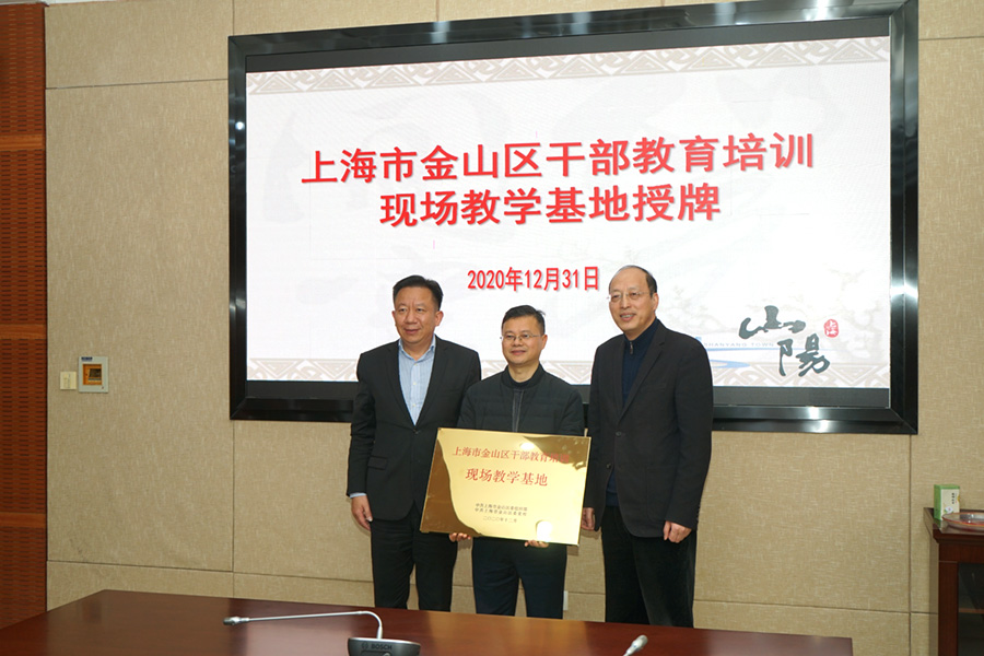 本网讯 12月31日下午,金山区委组织部、区委党校赴山阳镇、廊下镇,分别为上海湾区科创中心、“明月山塘——毗邻党建启航地”授予金山区干部教育培训现场教学基地铜牌。区委党校常务副校长孙秀强,区委党校副校长郜工农,山阳镇党委书记孙引良、党委副书记沈萍、党委委员俞红,廊下镇党委副书记周春芳、党委委员苏鹏以及区委组织部干部教育管理科相关同志等参加授牌仪式。