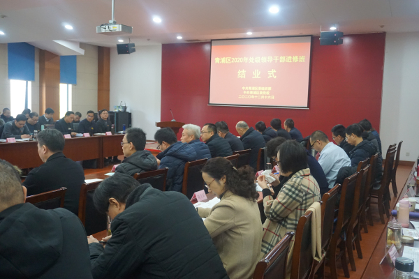 本网讯 12月16日上午,青浦区2020年处级领导干部进修班在区委党校顺利结业。区委常委、组织部部长蒋仁辉出席结业式并作讲话,区委组织部副部长陆志斌主持,区委党校常务副校长陈菊英,市委研究室经济处副处长宋鹏霖,本期处干班组织员、区发改委二级调研员蒋金坤出席。